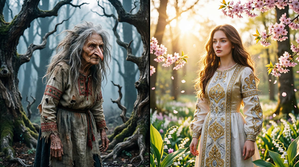 В славянских сказаниях, тех, что не попали в школьные учебники, есть одна история. Её почти не рассказывают вслух - потому что она слишком страшная и слишком красивая одновременно. Про Бабу-Ягу. Нет, не ту, с костяной ногой и носом крючком. Та - поздняя обложка, чтобы дети боялись и слушались. А настоящая - древняя. Её звали Ягиня. И она была красавицей. Не гламурной - другой. Которая знала травы, видела границы миров и не боялась темноты. И эту женщину полюбил сам Велес. Бог мудрости, магии и скота. Бог, который ходит между Явью и Навью - между живыми и мёртвыми. Свой и там, и здесь. А у Велеса была мать. Богиня по имени Амелфа. Старшая женщина, чьё слово никто не смел перечить. Амелфа посмотрела на Ягиню и решила: не ровня. Не место такой рядом с богом. И она коварно отправила Ягиню в Навь - в мир мёртвых. Не убила, нет. Хуже. Изгнала туда, откуда не возвращаются. Просто стёрла её из мира живых. Но Велес узнал. И пошёл за ней. Он спустился в Навь - туда, где даже боги теряют силу. На