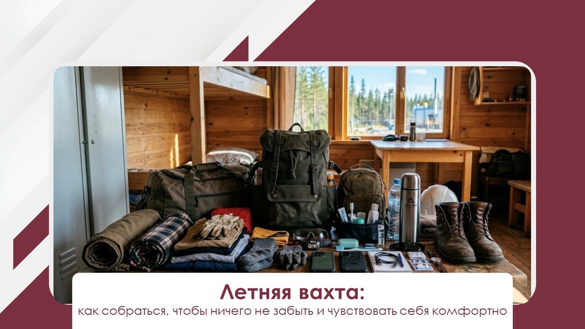 Лето — особенное время для вахтовиков. С одной стороны, длинный световой день, теплая погода и минимум лишней одежды. С другой — зной, насекомые и резкие перепады температур. Чтобы вахта прошла продуктивно и с комфортом, к ней нужно правильно подготовиться. Собрали главные советы по летнему «чемоданчику». Перед выездом убедитесь, что у вас с собой полный пакет необходимых документов (оригиналы). В особенности, если вы едете впервые и вас ожидает процесс трудоустройства. Вам наверняка был направлен список нужных документов. Обычно, в базовый комплект входят: - Паспорт (общий и водительский, если актуально); - Медицинский полис; - Военный билет (если вы военнообязанный); - Билеты (если летите или едете сами); - Реквизиты банковской карты для начисления зарплаты; - Документы об образовании, ИНН, СНИЛС. Совет: сфотографируйте документы и скиньте себе в мессенджер или на облако. Если что-то потеряется, фото могут спасти ситуацию. Летом погода коварна: днем +30, а ночью может быть +12, особе