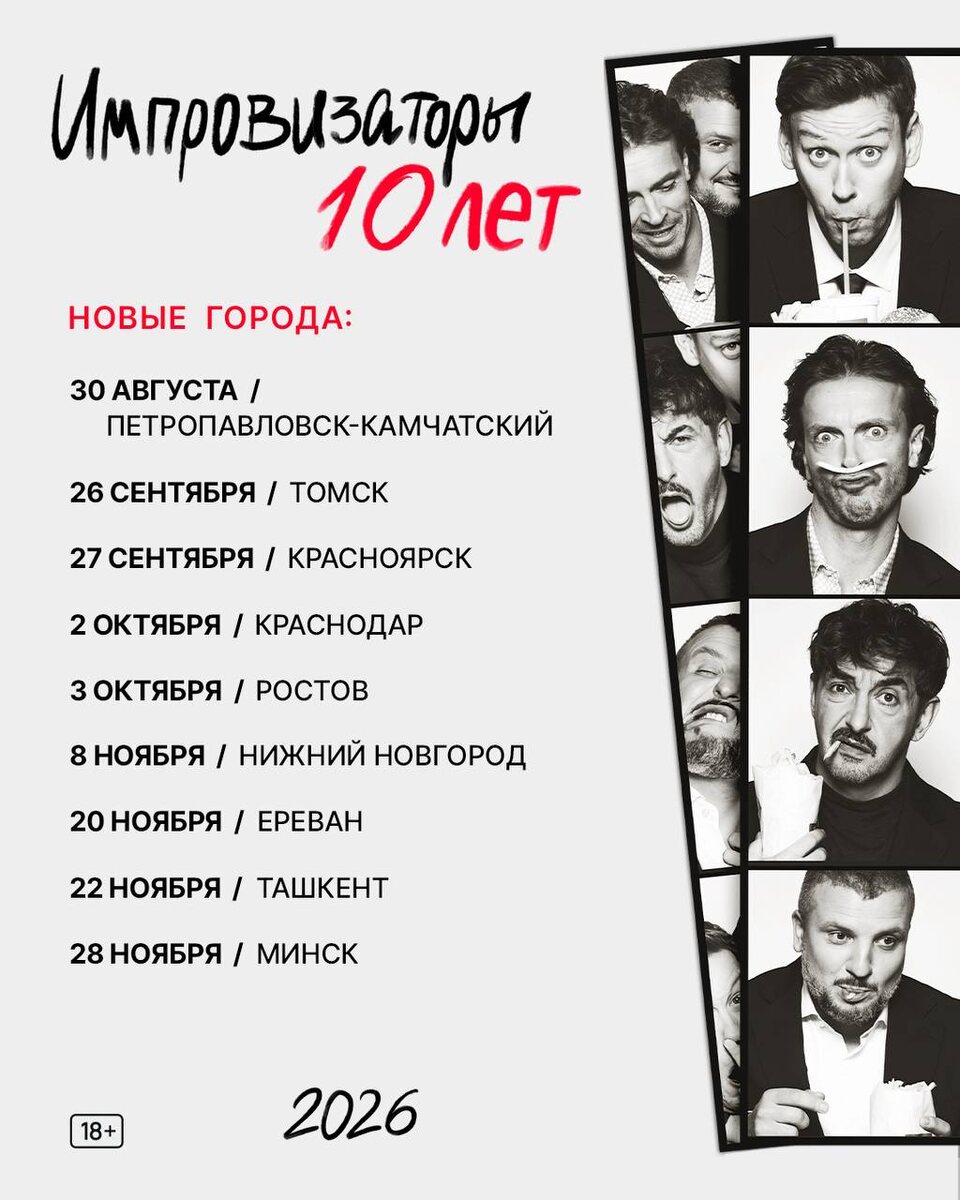 Друзья! У нас крутые новости: юбилейный тур импровизаторов расширяется — и всё благодаря вашей активности