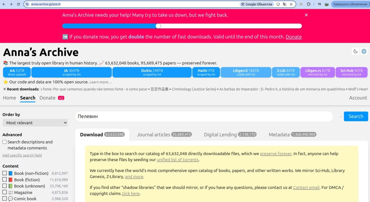 Издатели потребовали закрыть крупнейшую пиратскую библиотеку Anna’s Archive — в ней 140 млн книг и научных статей