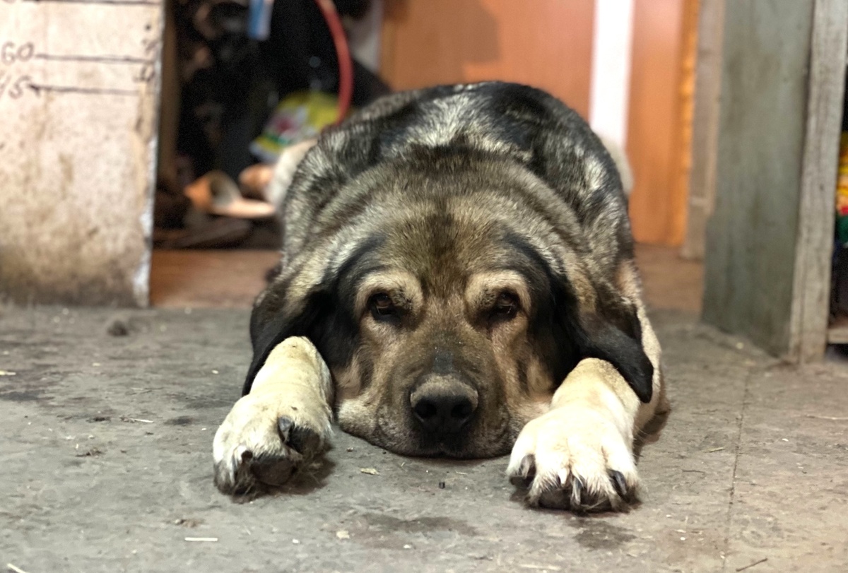 На улице опять зарядил холодный и затяжной весенний дождь, и Ваня решил пригласить Кваса домой. Несмотря на то, что у собаки есть своя будка, а еще он может спать на сеновале или в брошенном недалеко от нас недостроенном доме, который, к слову, облюбовали и коты, когда им хочется побыть одним, и козы порой туда наведывают, и Бэкон – несмотря на это, дома все равно уютнее. Тут и теплее, чем на улице, и вкусненьким чем-то могут угостить, и к нам поближе. Это любой собакой ценится, но в солидном возрасте Кваса – особенно. Вот и стараемся почаще баловать его. Квас пришел и улегся в проходе на кухню. Лимон, «неудачно» пребывавший в этот момент на втором этаже, оказался отрезанным от меня. Но поскольку он кот уже довольно смелый, то решился на дерзкий шаг – протиснуться между огромным спящим Квасом и стеной. Благо, чаузи у нас хоть и высокий, но весьма изящный (по форме тела, не по манере передвигаться). Очень тихо и осторожно, как заправский шпион, он тенью по стене обтекал большого пса. Но
