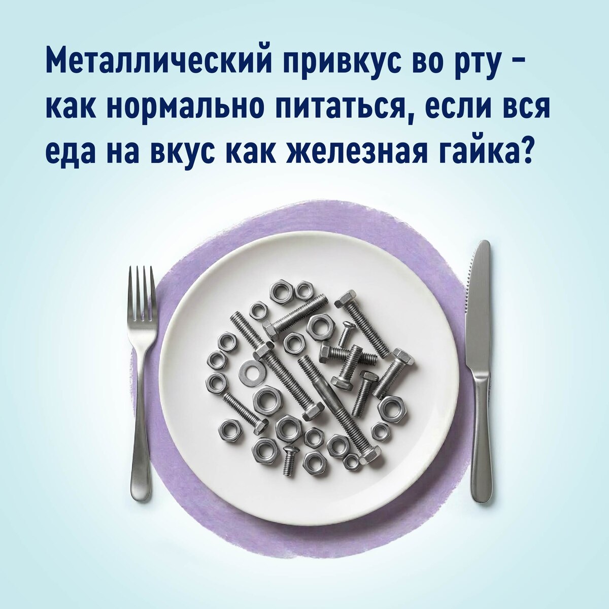? Кратко: это поправимо. Специальная посуда, температура еды и некоторые хитрости часто помогают убрать или, как минимум, значительно снизить металлический привкус и вернуть аппетит. К деталям — дальше, как обычно. ❓ Почему это происходит? Химиотерапия может влиять на вкусовые рецепторы и состав слюны. Мозг начинает неправильно интерпретировать сигналы, и нейтральная еда может начать казаться металлической (не только, но это одна из самых частых проблем). Это совершенно не опасно само по себе, но опасно последствиями: ведь если еда кажется противной, человек начинает есть меньше и теряет мышечную массу. А ее потеря — один из факторов, который может ухудшить результаты лечения. ✅ Что делать? 1️⃣ Меняем посуду. Любой «голый» металл, контактирующий с едой, усиливает привкус. Лучше всего не готовить в чисто металлической посуде и не есть из нее. Перейдите на эмалированный металл, пластик, стекло или даже одноразовую бумажную посуду. Проблемы могут вызвать сковородки — их не заменишь н
