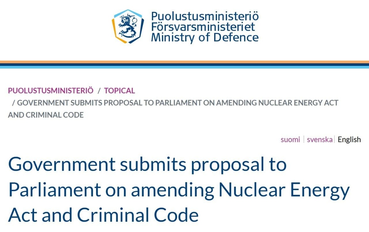 Правительство Финляндии выступило с инициативой отменить правовые ограничения на ввоз, хранение и транзит ядерного оружия через территорию