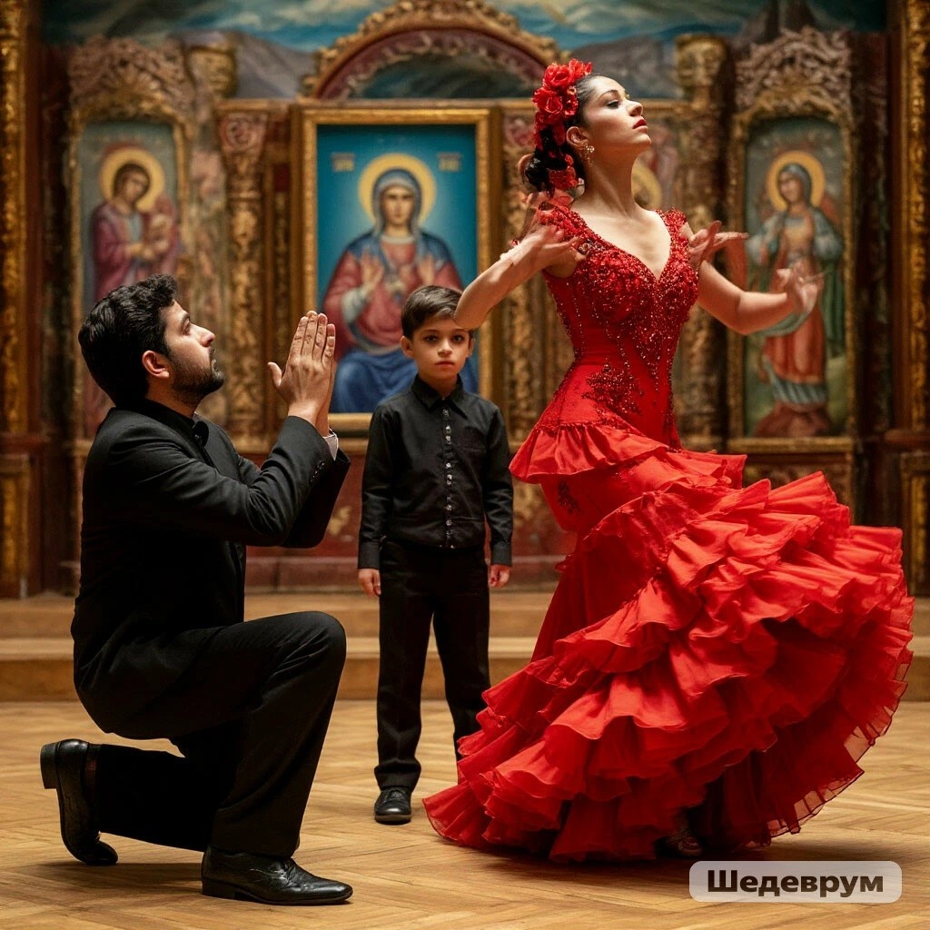 Ага, вот и мадам "всем хана", так задорно исполняет Фламенко, лихо щелкая кастаньетами, любо, дорого посмотреть. Ехидная улыбка на лице, взгляд наглый и пронзительный: