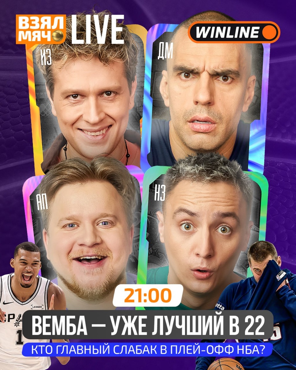 ! 🟠 Часть наград сезона нашли своих героев! 🟠 У «Сан-Антонио» нет шансов без Вембы? Когда он вернётся в строй? 🟠 Леброн в одиночку разобрался с «Хьюстоном». «Рокетс» — главный провал? 🟠 Игроки НБА ненавидят Gatorade? Попробуем разные напитки. 🟠 Как остановить Йокича? Разберём первые матчи серии «Денвера» против «Миннесоты». 🟠 Эджкомб вынес «Бостон». Есть ли у «Филадельфии» шансы пройти дальше? 🟠 «Орландо» забрал первый матч у «Детройта». Случайность или закономерность? В этот вечер вас будут ждать Николай Зеленкин, Андрей Панкрашев, Игорь Знаменский и Дмитрий Матеранский. Эфир стартует в 21:00! Не пропусти 👇 😉 YouTube 😄 Вконтакте 😌 Telegram 🙂 Twitch 🥰 RuTube 🏀 СМОТРИ ПЛЕЙ-ОФФ НБА: ЗАБЕРИ СВОЙ МОМЕНТ