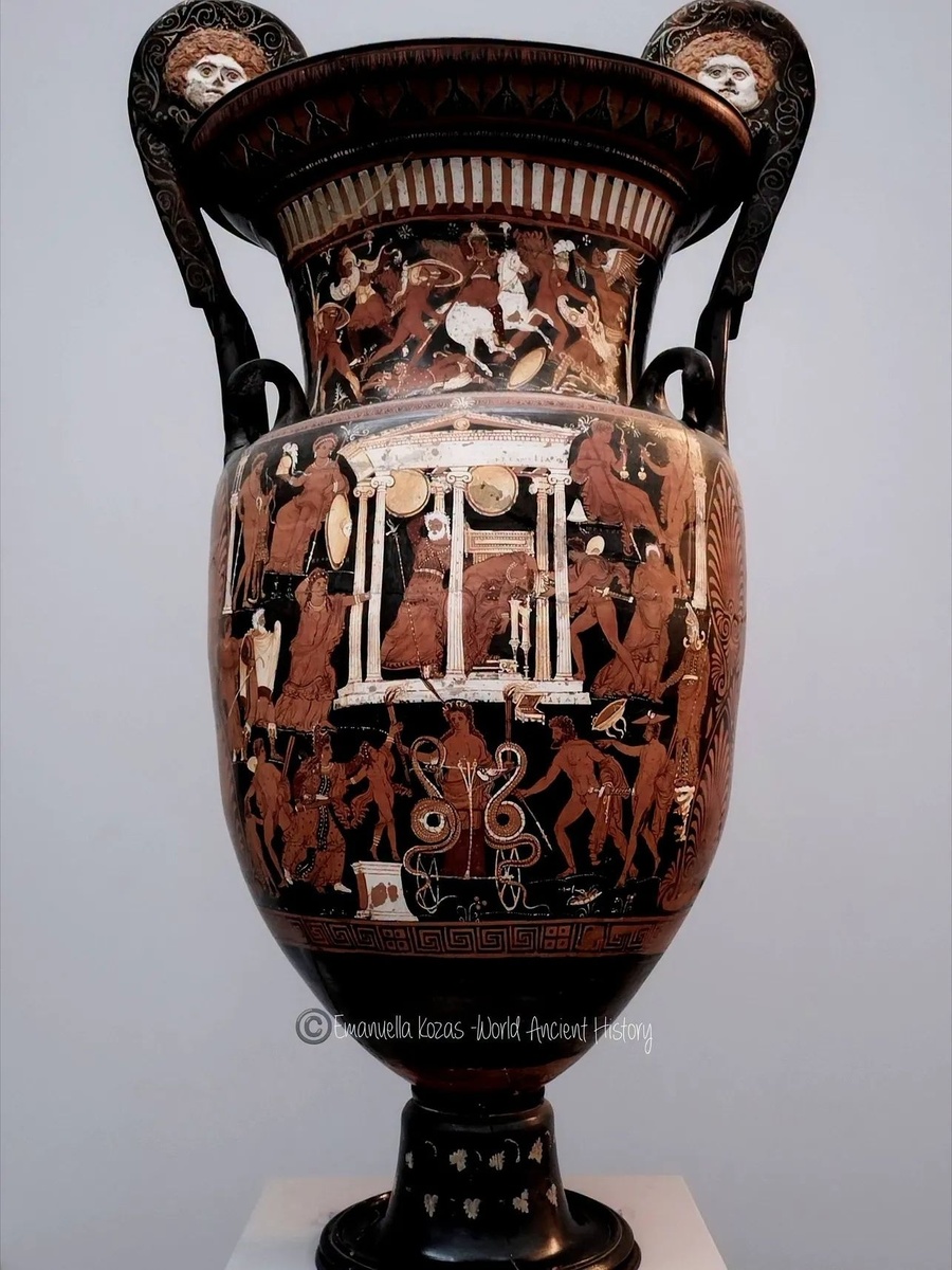 Одним из самых впечатляющих памятников древнегреческого искусства является апулийский краснофигурный кратер, созданный между 330 и 310 годами до н.э., который сегодня хранится в Государственном музее антиквариата в Мюнхене (Staatliche Antikensammlung). Этот сосуд диаметром около 60 сантиметров не только поражает своим мастерством и изяществом, но и рассказывает трагическую историю Медеи — одной из самых драматичных и загадочных фигур древнегреческой мифологии.