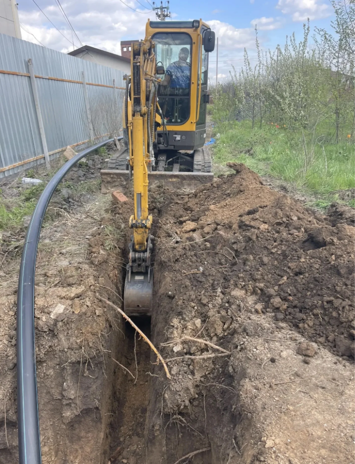 - открытый способ с использованием мини‑экскаватора — на остальных 80 м трассы.