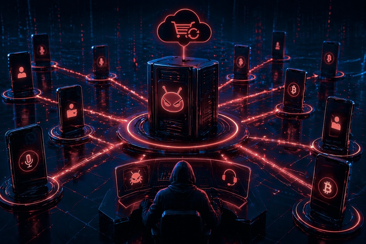 Вирусы для смартфонов всё больше напоминают обычный коммерческий софт по подписке или франшизу. Например, инструмент Cyber Android RAT сдают в аренду за 500 баксов, это только один из подобных продуктов. В комплекте есть десктопная панель управления и служба поддержки. Система изначально спроектирована как конвейер для автоматического сбора данных, скачивая переписку из WhatsApp, записывая звук и охотясь за криптовалютой. Как только человек открывает приложение криптокошелька, запускается скрипт. Он незаметно смотрит интерфейс приложения: посимвольно фиксирует вводимый пароль, проверяет баланс и копирует seed-фразу Для случаев, когда автоматика не справляется, предусмотрен ещё более неприятный режим «призрака». Он позволяет оператору пользоваться смартфоном параллельно с владельцем, в фоновом режиме открывая банковские приложения. При этом на самом экране устройства никакой активности не видно, а система заранее перехватывает пуш-уведомления и СМС с кодами подтверждения. Автоматизация