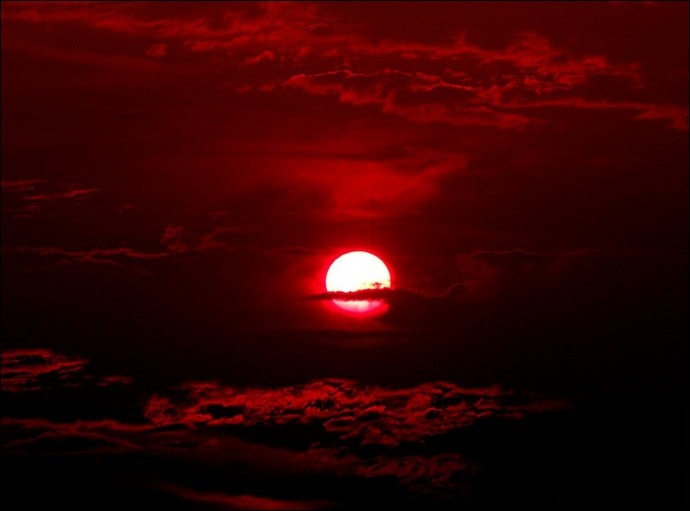 Красный глаз луны, в окне сияет,