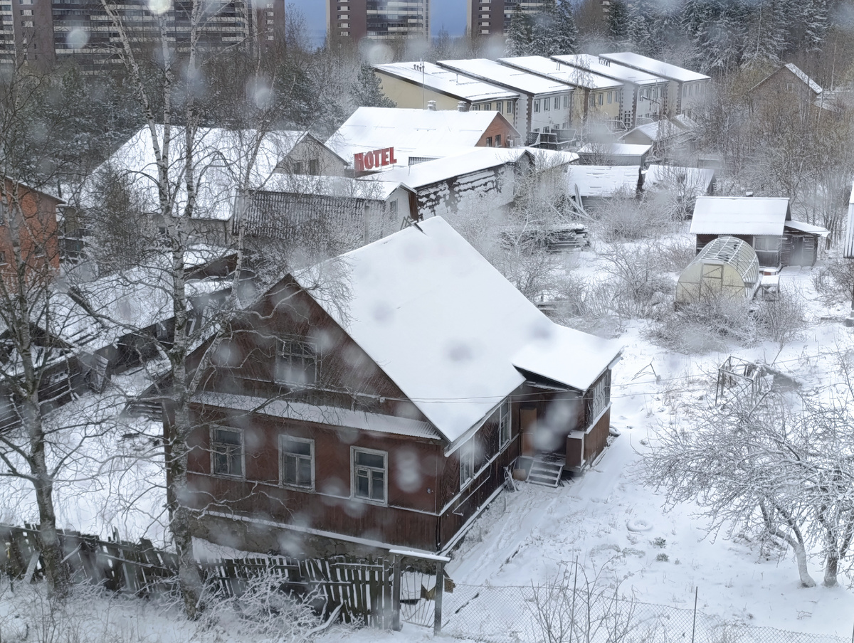 Вернулась домой, а здесь снег как лежал так и лежит.