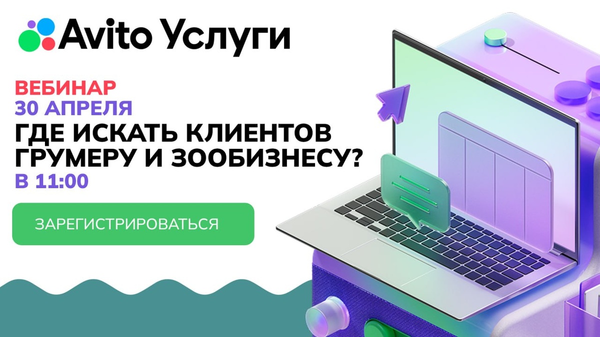 ! Коллеги, 30 апреля пройдет профильный вебинар от Авито Услуг, заточенный специально под нашу нишу — для исполнителей и владельцев бизнеса в сфере ухода за животными. Встреча продлится около часа, за это время вы получите четкую выжимку по работе с сервисом и сможете задать свои вопросы. Что в программе: 🟣 Аналитика: кто ваша аудитория на Авито Услугах и какие запросы сейчас в топе. 🟣 Выбор клиента: на что реально обращают внимание владельцы питомцев при поиске специалиста. 🟣 Практика: пошаговый план для грумеров — как успешно стартовать на сервисе всего за 3 шага. 🟣 Маркетинг: как грамотно оформить объявление, запустить продвижение и оценивать результаты. 🟣 Инструменты: эффективные фишки Авито как для частных мастеров, так и для владельцев компаний. 🎤 Спикер: Юлия Архипова — менеджер по работе с ключевыми клиентами Авито Услуг. 📅 Когда: 30 апреля в 11:00 по МСК ⏱️ Длительность: ~ 1 час ❗️ Важно: участие в вебинаре абсолютно бесплатное, но для доступа к трансляции ОБЯЗАТЕ