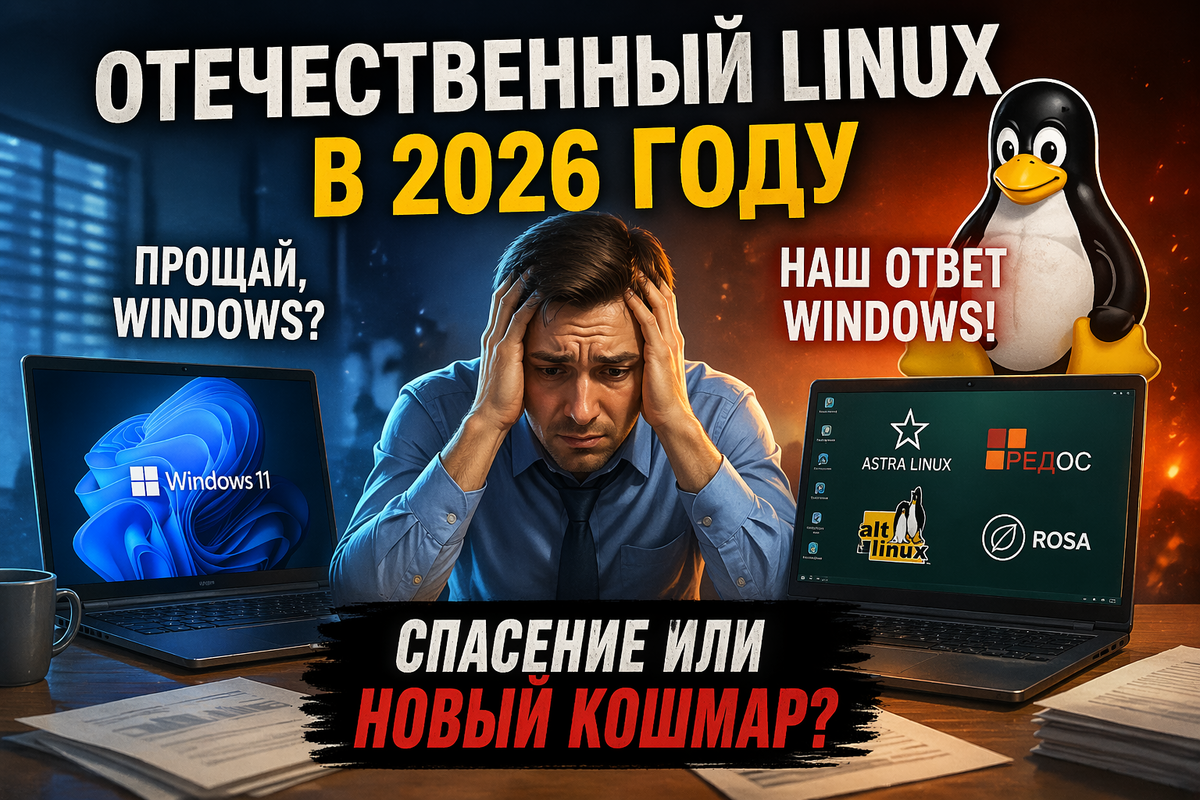 — «Опять ничего не работает…» Так что же происходит на самом деле? Почему в 2026 году российский Linux внезапно стал темой номер один — и правда ли, что скоро на него пересадят вообще всех? Разбираемся простым языком. Причина банальная: жизнь заставила. После ухода многих западных компаний из России вопрос «на чем работать?» стал не философским, а очень практичным. Госструктуры, школы, больницы, крупные компании — всем нужно: И тут оказалось, что Linux — это не только «черный экран для программистов». На рынке быстро выросли российские системы: И каждая обещает почти одно и то же: «Переходите к нам — будет безопасно, удобно и по-русски». Звучит красиво. Но есть нюанс. Главная боль любого перехода — привычки. Человек 15 лет работал в Windows: И