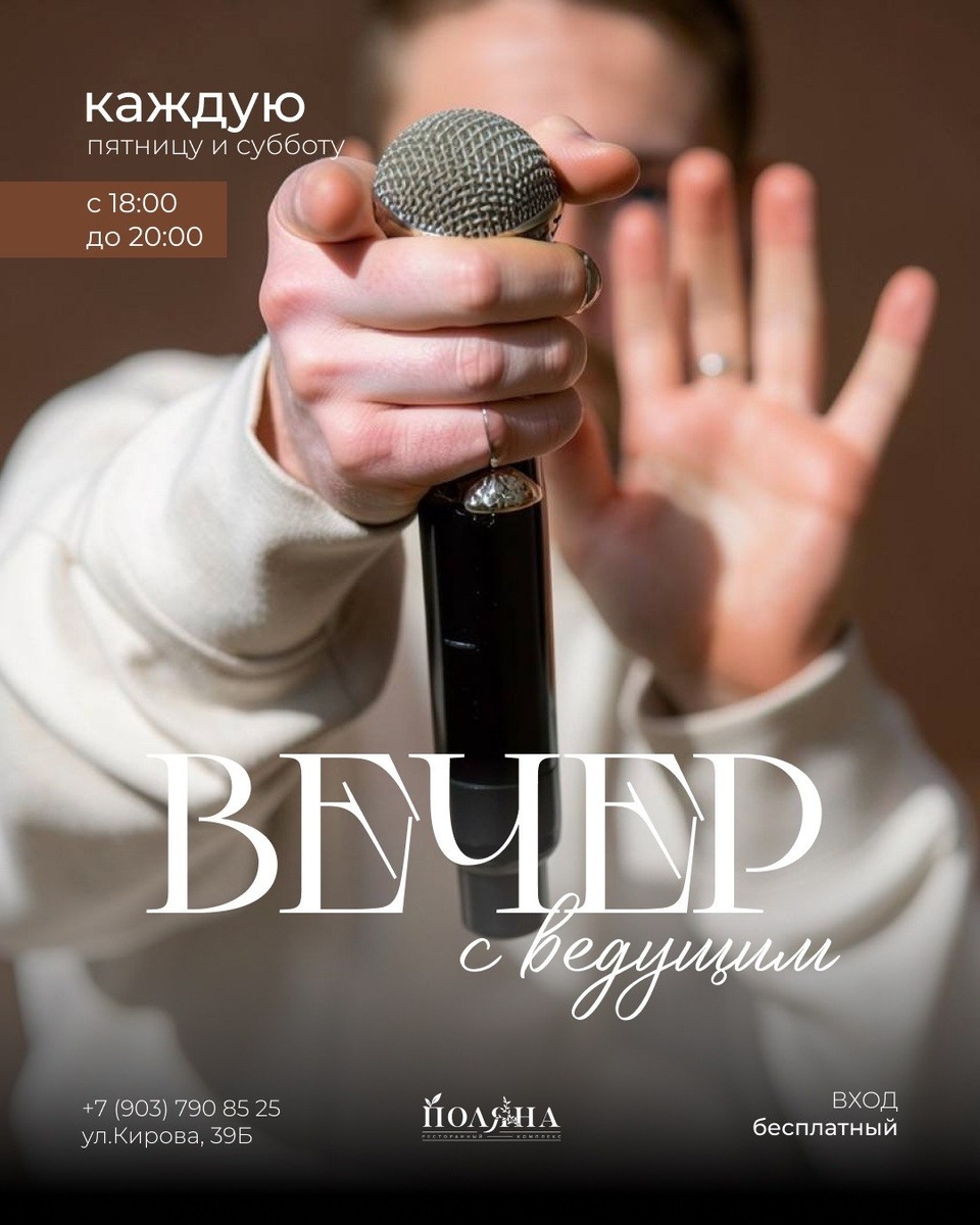 🥘 🔥 Каждую пятницу и субботу — особенный вечер в нашем каминном зале! 🕕 С 18:00 до 20:00 вас ждёт увлекательная программа с харизматичным ведущим! 💃 А каждую субботу с 20:00 — время зажигательных танцев! Диджейские ритмы, драйв и атмосфера настоящего праздника! ✨ Вход для всех бесплатный! Но количество мест ограничено, поэтому не забудьте забронировать столик заранее. Все подробности уточняйте у менеджера ресторана. 📅 Ждём вас! Для связи: 📞+79037908525 ✍🏻📱+79037908525 📶 Категория: Ресторан 🏢 Место: Ресторанный комплекс "Поляна" 📍Адрес: г. Подольск, ул. Кирова 39б. ⏱ Часы работы: 12:00 – 00:00 ✅ Где поесть, Подольск!? https://dzen.ru/id/6756016c107ef731969e16a5 https://vk.com/gde_poest_podolsk https://dzen.ru/gde_poest_v_podolske