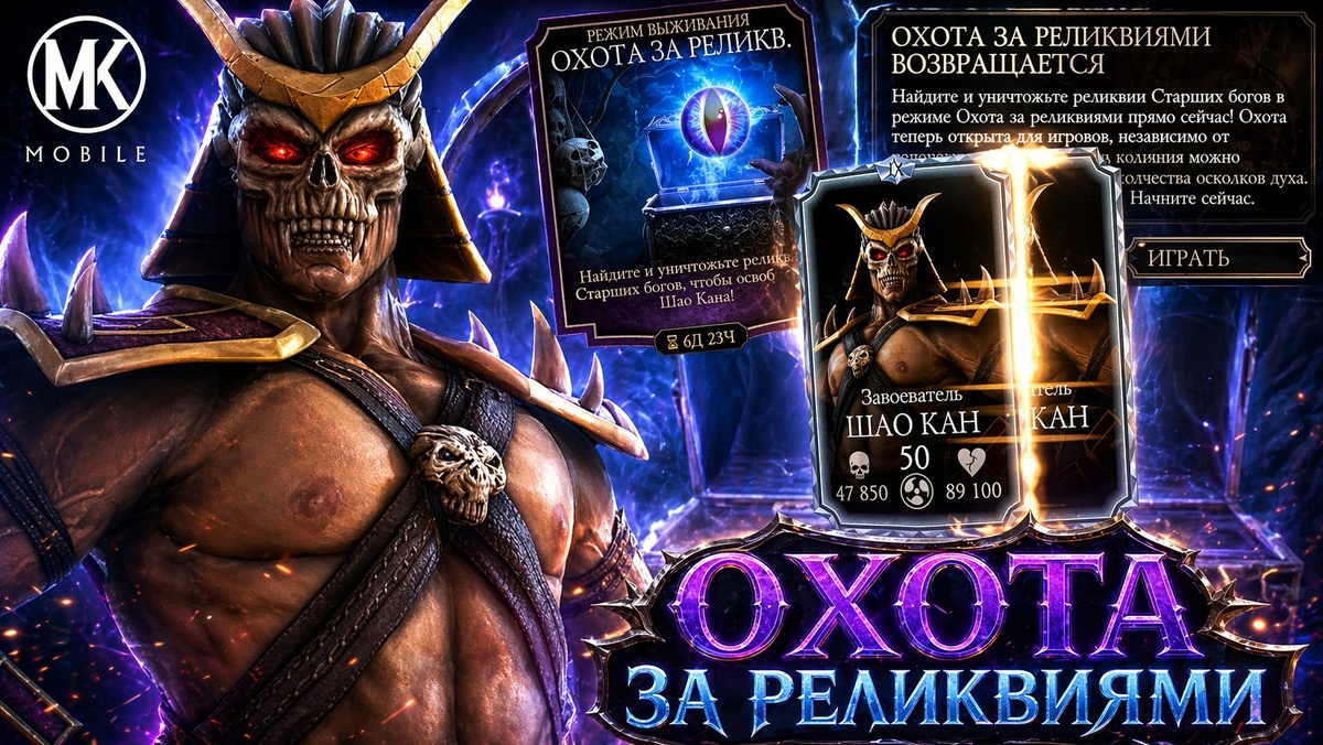 📲 Категория: Охота за реликвиями 📅 Дата загрузки: 23.04.2026 22:16 ▶️ Добавлено: Шао Кан Завоеватель 📆 Запуск: 6 мая 2026 г. 📆 Конец: 20 мая 2026 г. Подробности → mk-mobile.ru/hunts ❤️ Поддержи лайком. ❤️ ⚫️ Магазин: wb-shop.pro ⚫️ Бот: @mk_mobile_rss_bot ⚫️ Консультант: @antonov1291 ⚫️ Наш тг канал @WB-SHOP.PRO НОВОСТИ Mortal Kombat mobile #MKmobile #WBshop #WBshopPRO
