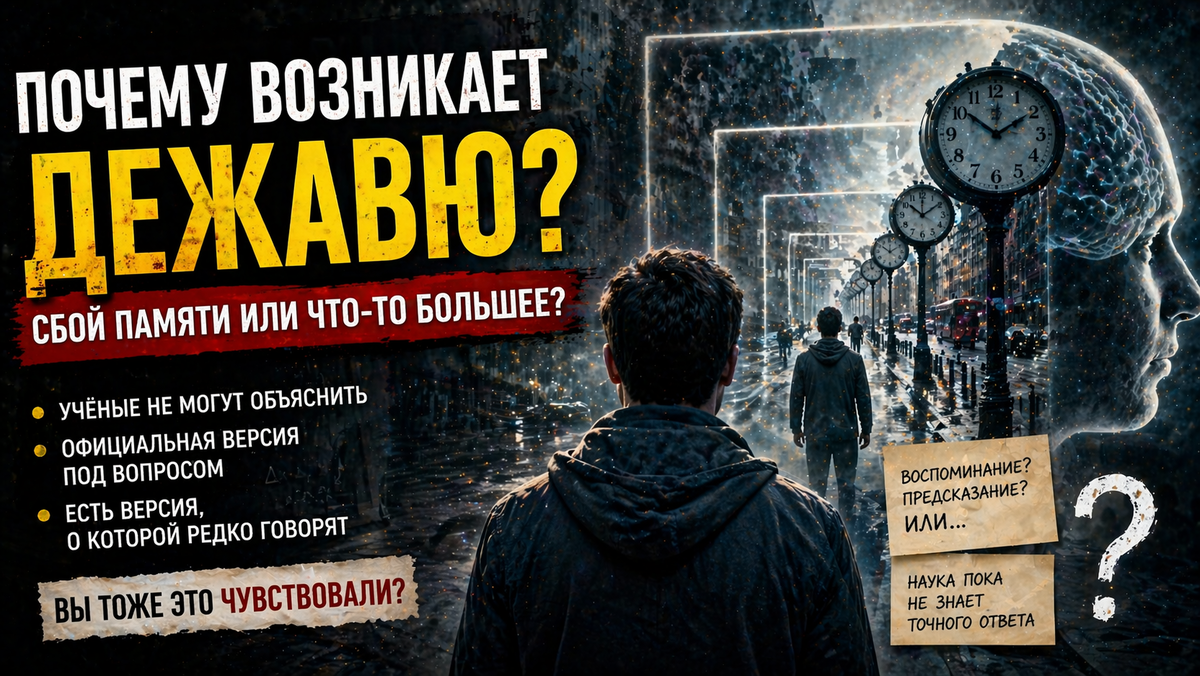 Вы тоже ловили этот момент? Когда вдруг кажется - это уже было. Та же улица, те же слова, тот же разговор. И главное - ощущение не просто знакомости, а точного повторения. На первый взгляд всё просто - мозг перепутал воспоминания. Но есть одна странность, о которой редко говорят. Дежавю возникает даже тогда, когда вы точно знаете - такого быть не могло. И вот здесь начинается самое интересное. Самое распространенное объяснение связано с работой памяти. Считается, что дежавю - это короткий "сбой синхронизации" между системами мозга. Одна часть мозга обрабатывает текущую ситуацию, а другая случайно помечает ее как уже знакомую. В результате появляется ощущение, что событие уже происходило. Это связано с работой гиппокампа и височных долей мозга. Звучит логично. Но не объясняет все. Есть важный момент. Дежавю - это не просто "знакомо". Это ощущение уверенности. Как будто вы точно знаете, что будет дальше. Иногда люди даже могут предсказать следующий момент - и он совпадает. Совпадение? Ил