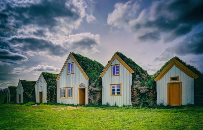 Задолго до эпохи стекла и бетона на севере Европы, там, где не было леса, а земля большую часть года оставалась сырой и тяжёлой, викинги научились строить дома буквально из того, что у них было под ногами. В Исландии дома «вырастали» из дёрна – плотных платов почвы с травой, которые укладывали слоями. Такие жилища удерживали тепло в стужу и дарили прохладу летом. Неудивительно, что некоторые из них сохранились до наших дней, а технологии строительства активно используются и современными архитекторами по всему миру.