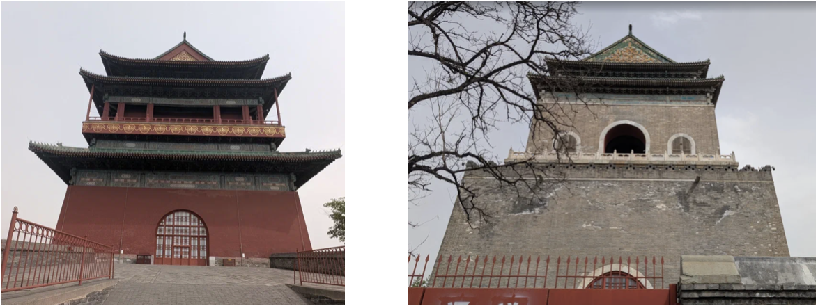 Величественные Колокольная и Барабанная башни, стоящие в северной оконечности Центральной оси Пекина, были не только средствами измерения времени, но и стратегическими высотами в северной части имперской столицы. Вместе с городскими надвратными башнями, барбаканами, угловыми башнями и оборонительными стенами они составляли единое целое в городской структуре.