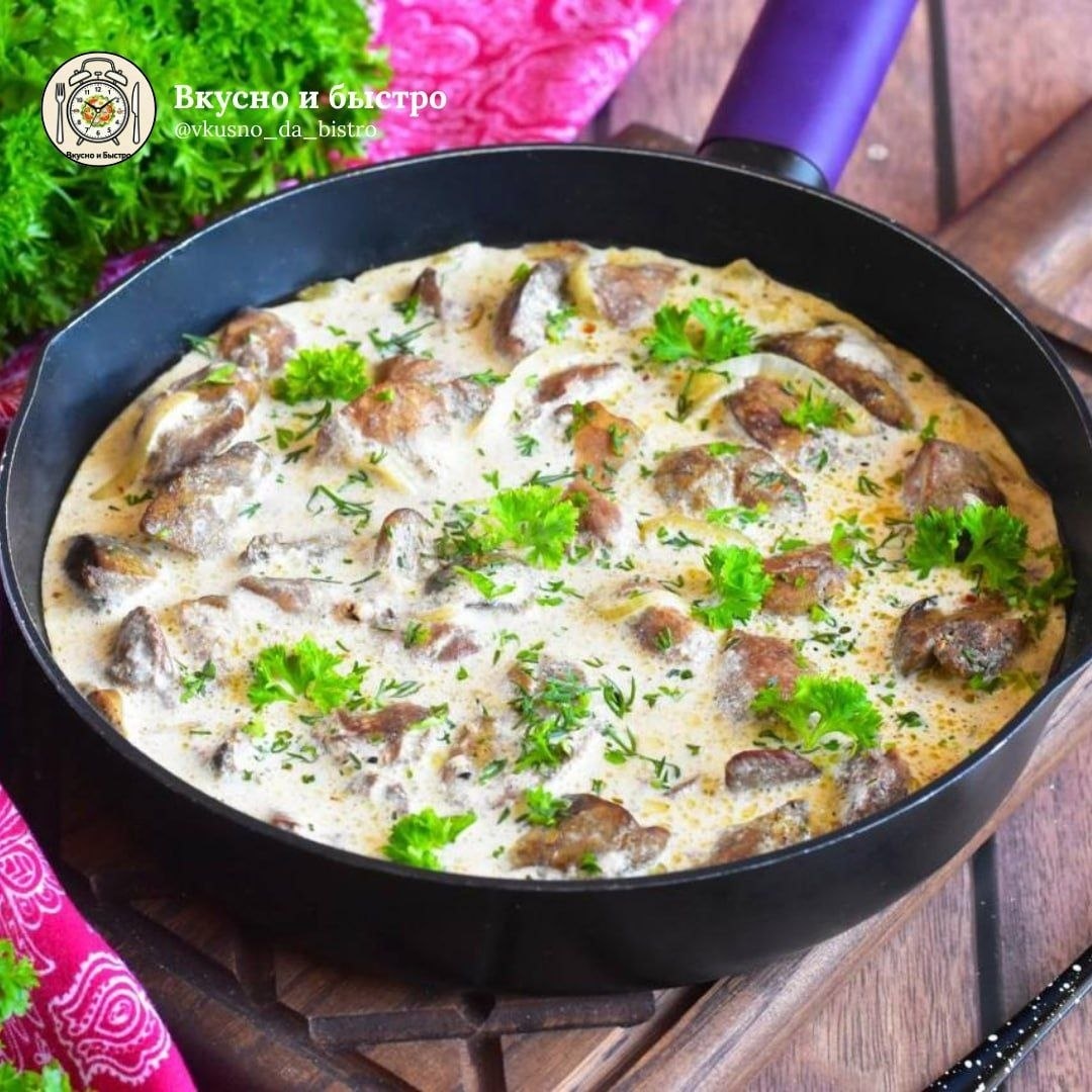 #обед #ужин #30мин 🕒 Время приготовления: 30 мин Порции: 3–4 Сложность: легко 🧾 Ингредиенты: 🟠Куриная печень — 500 г 🟠Мука — 2 ст. л. 🟠Соль — 1 ч. л. 🟠Перец — по вкусу 🟠Растительное масло — 1 ст. л. 🟠Лук — 1 шт 🟠Сливки — 300 мл 🟠Карри — 1/4 ч. л. 🟠Вода — 100 мл 🍴Приготовление: 1. Куриная печень промойте, обсушите и нарежьте на половинки или четвертинки. 2. Обваляйте печень в смеси муки, соли и перца. 3. Разогрейте сковороду с маслом и обжарьте печень на сильном огне 6–7 минут, помешивая. 4. Добавьте нарезанный лук и готовьте ещё 3–4 минуты. 5. Влейте сливки, добавьте карри, перемешайте и долейте воду. 6. Накройте крышкой и тушите на среднем огне 10–15 минут до мягкости. Вкусно и Быстро | Мы в Мах 📲