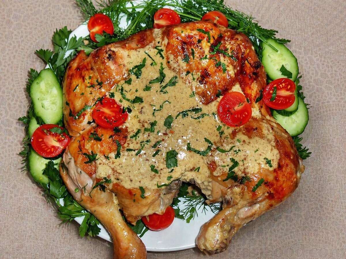 Шкмерули - знаменитый цыплёнок тапака по-шкмерски, блюдо с насыщенным вкусом и грузинским характером. Его родина - высокогорная область Рача в Западной Грузии, где кулинарные традиции особенно яркие и самобытные. Именно в селе Шкмери появился этот ароматный рецепт, покоряющий сочетанием сочного мяса и насыщенного соуса. Ингредиенты 📌Цыплёнок - 1 шт. 📌Сливки - 200 мл 📌Чеснок - 4 зубка 📌Аджика - 2 ч. л. 📌Масло сливочное - 40 г 📌Масло растительное - 2-3 ст. л. 📌Зелень - по вкусу Как готовить 1. Цыплёнка разрезать по грудке, распластать на разделочной доске 2. Обмазать тушку аджикой, посолить, дать постоять минут 30 или час 3. На горячую сковороду налить растительное масло, добавить сливочное 4. Уложить курицу, накрыть крышкой, поставить сверху гнёт. На среднем огне жарить минут 20 с одной стороны, и столько же - с другой стороны. Готового цыплёнка переложить на другую сковороду 5. В сковороду, на которой жарили цыплёнка, влить сливки, посолить, добавить чеснок, выдавленный через