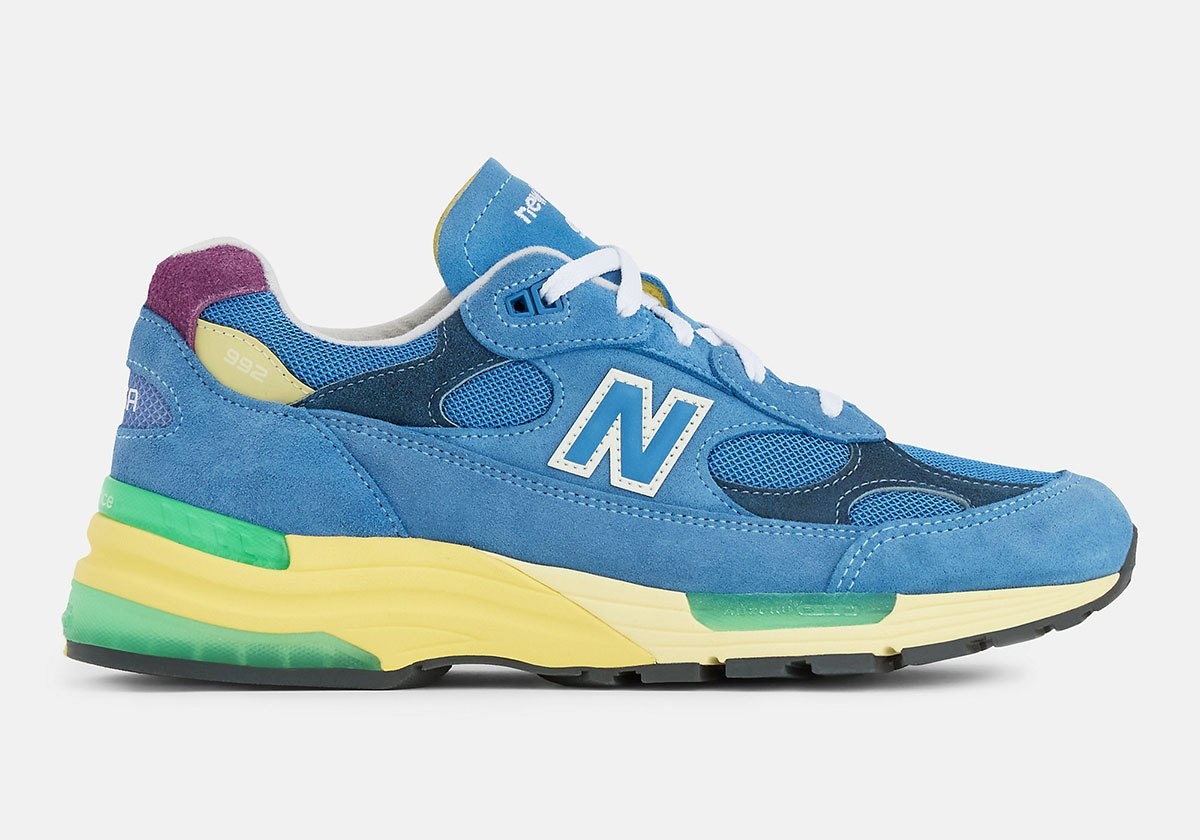" 🌊 New Balance представили новую расцветку модели 992 из программы Made in USA под названием "Sea Stone". Эта версия отличается от привычных земляных оттенков и предлагает более яркий профиль. Верх кроссовка выполнен из замши цвета Cerulean, а на пятке расположена вставка из замши фиолетового цвета. Промежуточная подошва имеет солнечный оттенок, при этом в элементах амортизации присутствуют зеленые акценты 🎨. Модель готова к весеннему сезону. Мировой релиз запланирован на 30 апреля.