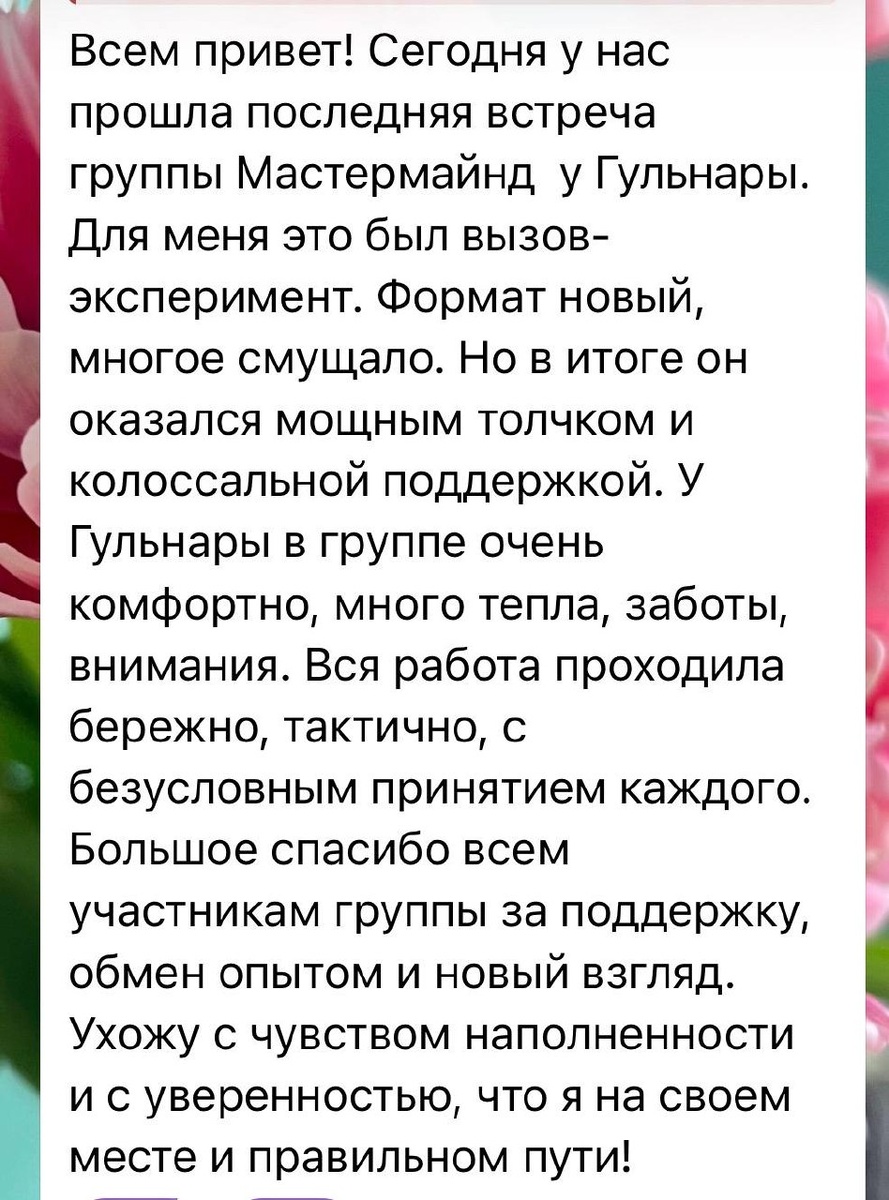 ♥️ Вы не представляете, как это ценно. Тем временем, приглашаю в работу в групповом терапевтическом формате с применением передовых методик EMDR, ImTt и др. Старт 6 мая. Встречи будут по средам в 10-00 мск в течение 8 недель. Занимайте свои места. После 28.04 скидка 25% сгорит. Подробные условия участия ЗДЕСЬ https://docs.google.com/document/d/1nBloAdmaUbDXlWBehJFZytP7ai8mL3PQEYf7MSZ2Fnc/edit?usp=sharing