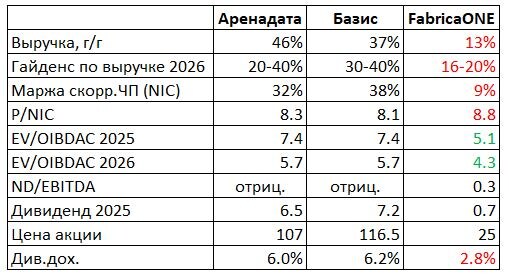Интересно ли IPO FabricaOneAI? Поскольку ранее сравнивал двух других разработчиков ПО - Аренадату (держу в портфеле) и Базис (недавно выходил на IPO), добавляю в сравнение и новичка. Фабрика уступает по темпам роста и рентабельности, а также дивидендной доходности и политике (payout от 25% до 50% NIC, причем за 2025 год собираются платить как я понял 25%, в то время как у конкурентов - 50%). Частично это отставание компенсируется более дешевой форвардной оценкой EV/EBITDAC на 2026, посчитанной при 20% росте выручке и неизменной рентабельности EBITDAC 12%. Тут есть вопрос, откуда оптимизм, ведь в 2025 году рост выручки составил скромные 13%. 📌 Резюмирую: хотя размещение и не кажется дорогим по оценке, но и значимого дисконта или преимуществ перед другими компаниями сектора не просматривается. Я не буду участвовать. @feargreed
