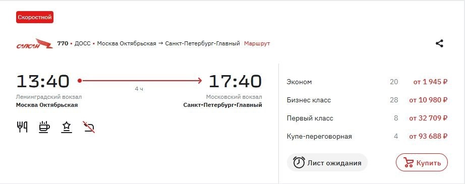 ». Минимальная цена на билет в этот день заморожена на символичной отметке в 1945 руб. Речь, конечно, о местах в самом дешевом классе – экономе, который в такие даты высокого спроса обычно распродается подчистую. Но в этот раз по спеццене уехать все-таки получится. Подробнее о количестве мест и других дешевых вариантах между двумя столицами написали на ТурДоме. @tourdom