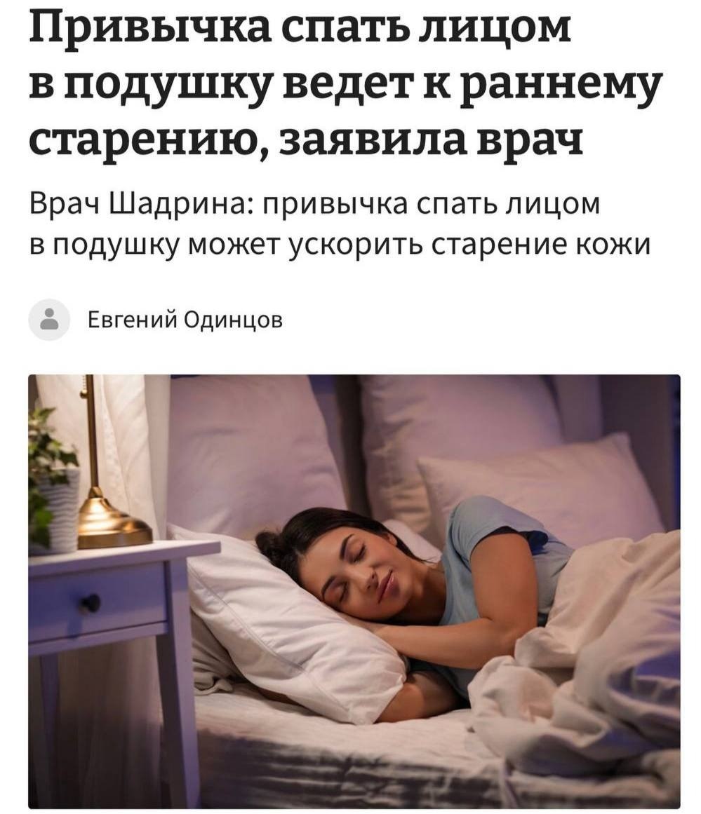 ». Когда мы всю ночь упираемся щёкой в подушку, кожа сминается, на неё давят и тянут ткани, и со временем эти складки «запоминаются» — коллаген и эластин меняют структуру, и заломы уже не расправляются днём. Врачи советуют снижать давление на лицо: переходить на сон на спине, выбирать ортопедическую или более плоскую подушку и следить за наволочкой (мягкая ткань, меньше трения), если хочется отложить появление новых морщин. 🫣 #здоровье #кожа #сон #антиэйдж
