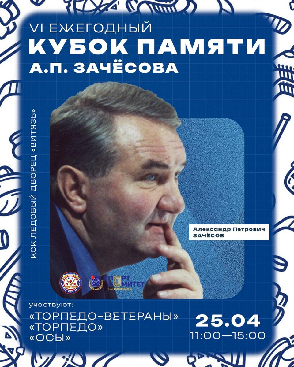 ✨ Хоккейный турнир памяти Александра Зачёсова — первого главного тренера «Витязя» в Суперлиге Примут участие команды «Торпедо-ветераны», «Торпедо» и «Осы». Все игроки старше 50 лет. 🏒Символическое вбрасывание состоится в 11:00. Далее команды сыграют по круговой системе. 👉Отдельная интрига - сможет ли кто-то прервать многолетнюю победную серию «Торпедо-ветеранов», выигрывающих турнир с 2021 года. ⚡Напомним, Александр Зачёсов коренной подольчанин, в 1970-е годы защищал цвета команды «Труд», затем стал тренером подольского «Витязя». 🚫 Возраст: 12+ 📆 25.04.2026 🕒 11:00 🏢 ЛЕДОВЫЙ ДВОРЕЦ «ВИТЯЗЬ» 📍 г. Подольск, ул. Кирова, д. 63а 💰 Вход свободный❗️ ⭐Поддержать канал голосом 🍰Где поесть в Подольске ✅ Мероприятия Подольск https://dzen.ru/id/66ed500f7b5671493eca3fd6 https://vk.ru/podolsk_events http://dzen.ru/podolsk_events