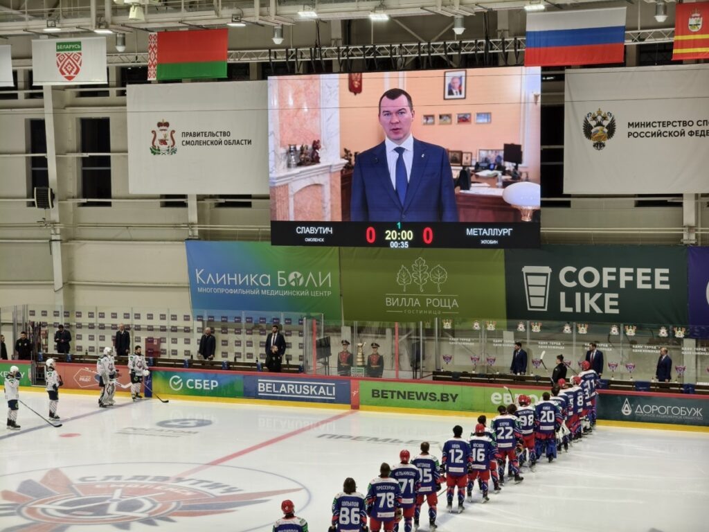 Перед жаркой баталией «Славутича» с жлобинским «Металлургом» 22 апреля на арене смоленского дворца спорта «Юбилейный» прозвучало приветствие от министра спорта России Михаила Дегтярева. Министр отметил, что смоленская команда достигла невозможного – прошла в финал Кубка Президента Республики Беларусь. «Как подчеркивает президент России В.В.Путин, Россия заслуженно входит в число ведущих хоккейных держав. Мы подарили миру целую плеяду легендарных игроков и тренеров. Их незабываемые победы стали неотъемлемой частью спортивной славы России. Клуб «Славутич» был основан в 2010 году, успешно выступал в Российской хоккейной лиге, а в 2024 году «Славутич» был возрожден и дебютировал в сильнейшем дивизионе чемпионата Беларуси – Экстралиге. Уже в первом сезоне команда сенсационно пробилась в плей-офф, а теперь вышла в финал Кубка Президента Республики Беларусь. Я желаю нашей команде победы, а всем нам – веры, надежды и любви. Ведь любовь к России и спорту – это то, что нас объединяет», — отметил
