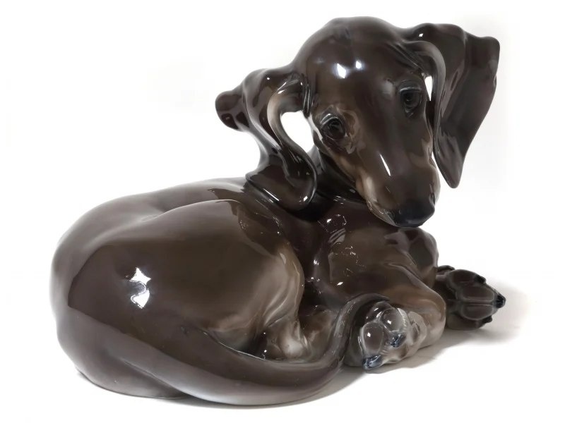 " Розенталь Rosenthal, 1927 Фарфоровая фигура (статуэтка) "Такса". Ручная подглазурная роспись. Германия, Rosenthal, 1928 год. Скульптор: Theodor Karner. Клеймо производителя. Номер модели: P296, производится с 1927 года. Высота: 15,5 см, длина: 20,5 см, ширина: 14,6 см. Без сколов, повреждений и без реставраций. Porcelain figurine "lying Dachshund". Hand-painted underglaze. Germany, Rosenthal, year 1928. Sculptor: Theodor Karner. Factory mark. Model: P296, produced since 1927. Height: 15.5 cm, length: 20.5 cm, width: 14.6 cm. Without chips, damage and restorations. RS_296 Собака Стоимость лота: 90 000 ₽ Подробнее на нашем сайте