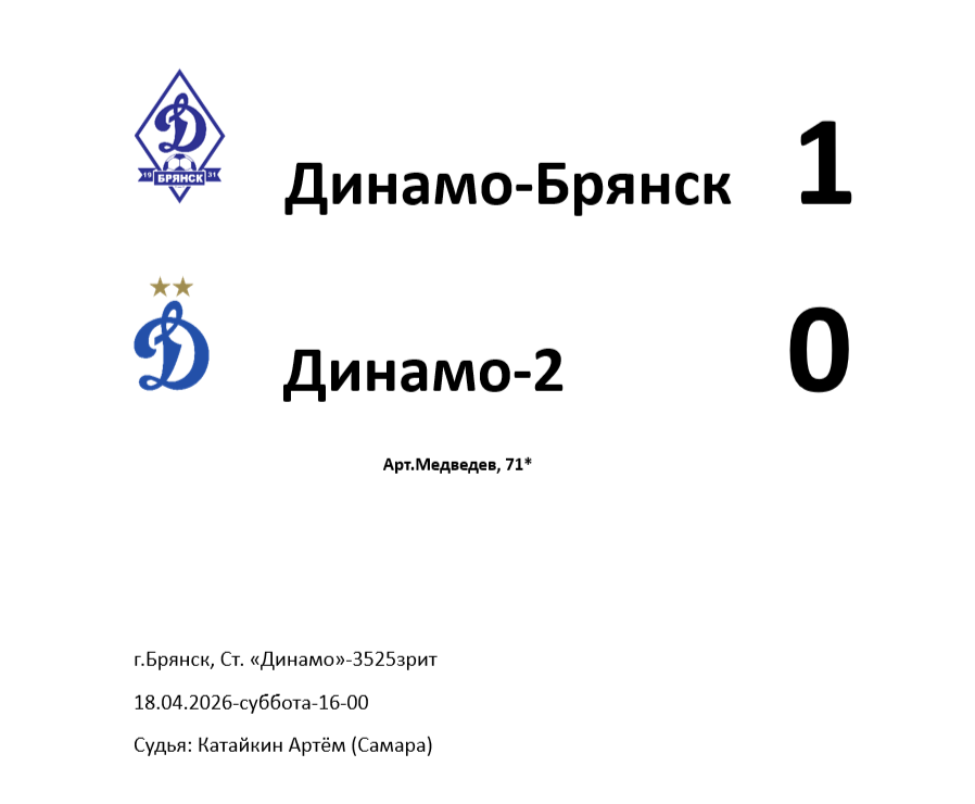 Использованы фото с официальных страниц ВК "Динамо-2" и "Динамо-Брянск"