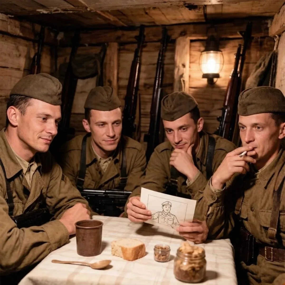 После тяжкого дня мы в землянку вернулись.