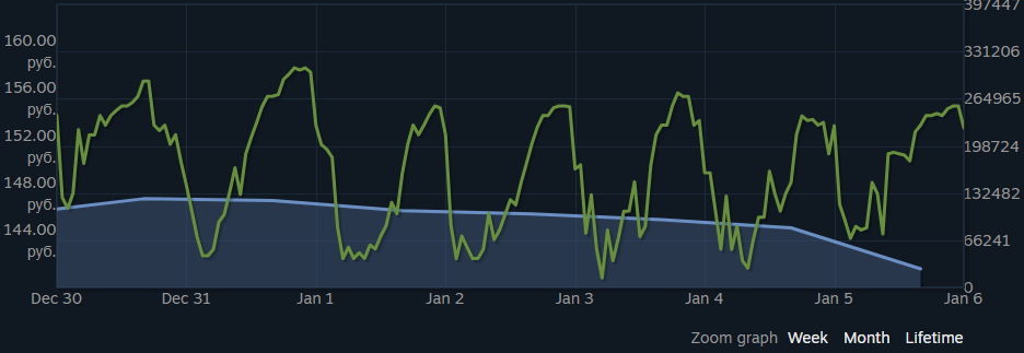 Представьте себе обычную ситуацию. Выходит долгожданная игра, или на популярный хит дают огромную скидку. Тысячи людей одновременно решают, что им срочно нужна эта игра, и выставляют свои кейсы, наклейки и скины на торговую площадку. Из-за такого резкого роста предложения, когда желающих продать становится намного больше, чем желающих купить, цены закономерно идут вниз.