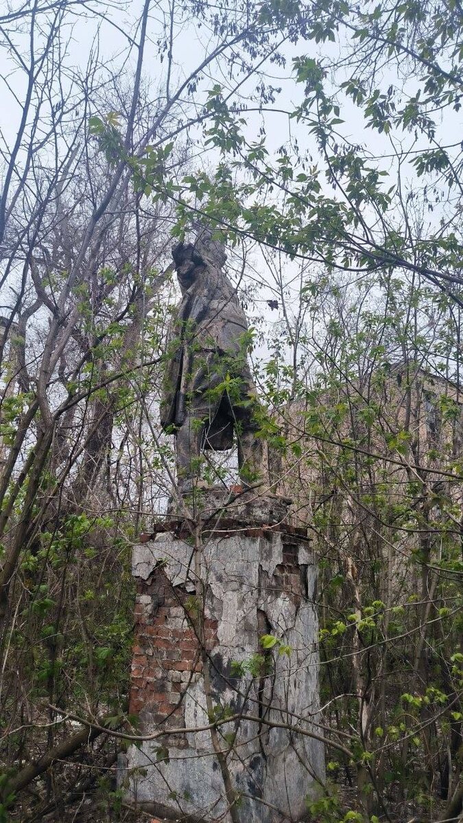 Разрушающийся памятник на территории завода ДЗХР в Куйбышевском районе Донецка