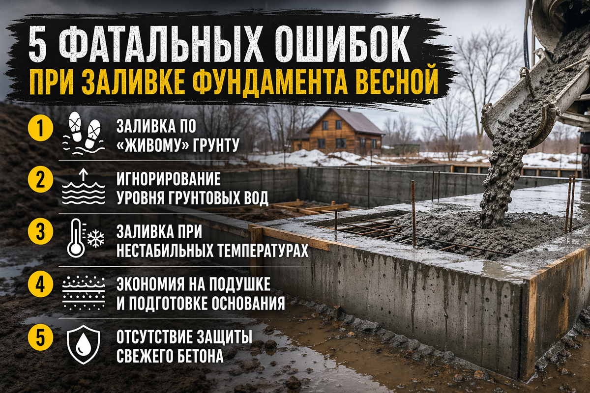 5 фатальных ошибок при заливке фундамента весной.