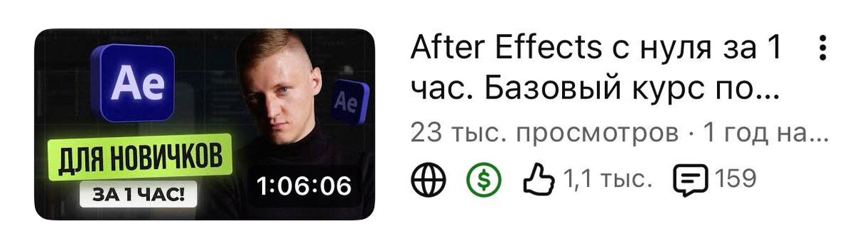 1. After Effects с нуля за 1 час — ну это маст хев для всех, кто в первый раз открыл программу: разбираем интерфейс, текстовую и шейповую анимацию, 2д трекинг на практическом примере с анимацией в стиле Apple 2. Ускоряем работу After Effects в 10 раз — здесь я даю 7 полезных лайфхаков как ускорить и оптимизировать работу в Ае даже на слабых пк 3. 3Д трекинг в After Effects для новичков — тут разбираем как работает эффект 3d camera tracker, который позволяет привязывать объекты к видео 4. Анимация Текста в After Effects для новичков — тут я показываю 5 простых и стильных текстовых анимаций, которые пригодятся при монтаже любого видео 5. 60000$ на одном проекте за 6 лет — ну и добавим немного мотивации. История о моем самом успешном проекте на стоках 🔥 Приятного просмотра #афтереффектс #aftereffects #стоки #проекты