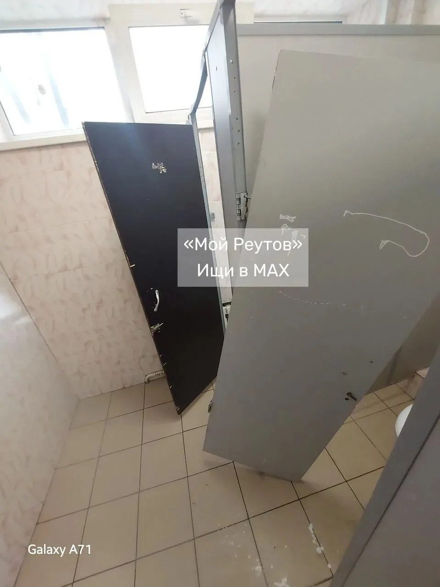 "Здравствуйте! 21.04.2026г. по факту вандализма в мужском туалете проведено служебное расследование. В ходе проверки установлено, что повреждения дверей в туалетной комнате на втором этаже были причинены учащимся школы. Виновное лицо установлено, родители признают ответственность за действия своего ребёнка. Ремонт и замена повреждённых дверей будут выполнены силами родителей 21 апреля. До завершения ремонтных работ учащимся рекомендовано пользоваться туалетными комнатами на первом и третьем этажах. Фотография с изображением повреждённого потолка сделана в мужском туалете на третьем этаже. В настоящее время потолочная плитка возвращена на место, дефект устранён. Признаков плесени под плиткой не выявлено. #Реутов" «Мой Реутов» ВКонтакте https://vk.ru/my_reutov