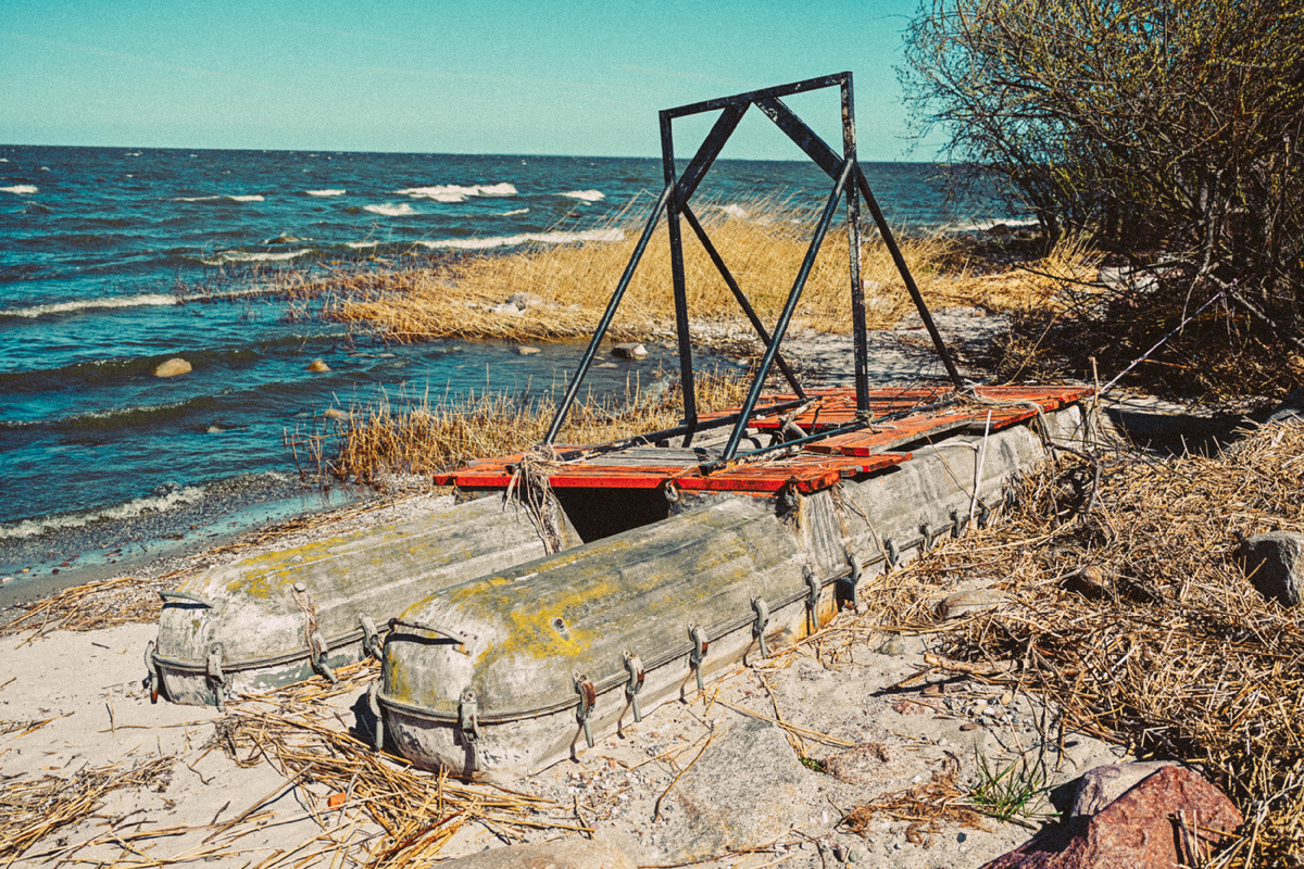 Среди камней и камышей Куршского залива наткнулся на странный аппарат, словно из «Безумного Макса». Оставалось только разобраться, что это такое, и открытие удивило даже видавшего виды исследователя заброшек. Оцените мощь креплений, клапаны выравнивания давления внутри в случае транспортировки на разных высотах, наподобие герметичных кофров. Это не бутафория, а довольно технологичный объект из прошлого. Из СССР. В 1964 году состоялся первый успешный запуск ракеты 3М9 для зенитного ракетного комплекса 2К12 «Куб». Ракета могла разгоняться до 2.8 Маха, но не стоит думать, что я нашел пару зенитных ракет. Однако что-то очень близкое. Это контейнеры для транспортировки ракет 3М9. Судя по состоянию, списаны они были еще во времена СССР, но местные рыбаки нашли им применение для полезного мирного дела — соорудили вот такой странный плот. Угадаете для чего он предназначался? Контейнеры состоят из двух надежно закрывающихся половин и с ровными площадками — из них получился отличный понтон, а из