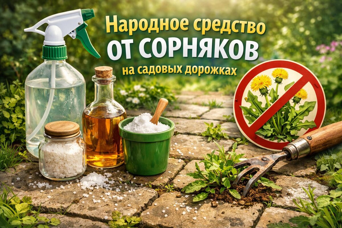 (Устали каждые выходные ползать на коленях, выковыривая сорняки между плитками? Есть простые, дешёвые и 100% работающие составы, которые сжигают траву с корнем за 24 часа. Никакой "химозы" — только соль, уксус и кипяток. Проверено, работает даже между плитками) ❌ ПОЧЕМУ ПРОПОЛКА НЕ ПОМОГАЕТ: Вы вырываете траву, а мелкие корешки остаются в щелях. Через неделю — новые всходы . Секрет в том, чтобы не срезать, а УНИЧТОЖИТЬ корневую систему. И это можно сделать без опасных гербицидов . Почему работает: Соль создаёт агрессивную среду, где не выживает ничего живого. Уксусная кислота (даже 9%) разрушает клеточную структуру растений, буквально «сжигая» листья и стебли. А мыло работает как прилипатель — не даёт раствору стекать с листьев . Ингредиенты (на 1 литр): Приготовление: Как применять: Результат: Засохшую траву легко вымести метлой или выдернуть с корнем. Почему работает: Крутой кипятк прожигает ткани сорняка, а соль не даёт корням восстановиться . Ингридиенты (на 1 литр): Приготовление: