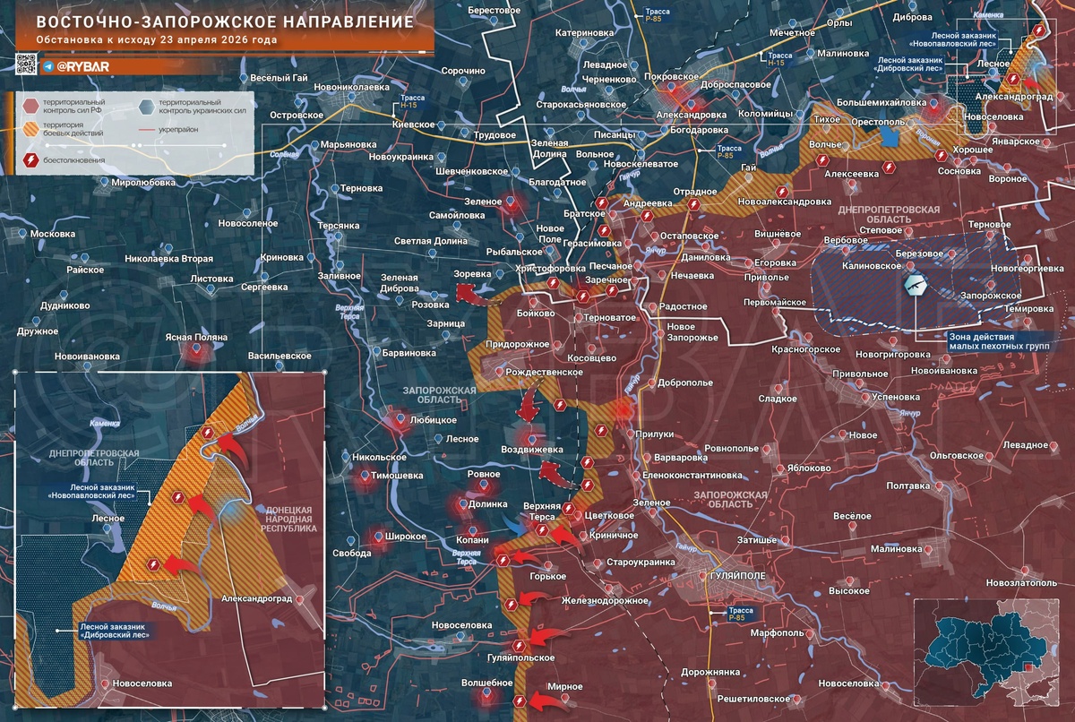 На Восточно-Запорожском направлении воины-дальневосточники постепенно оттесняют противника из окрестностей Александрограда. Долгое время на участке сохранялось «информационное затишье», однако недавно стало известно о новых атаках ВС РФ в сторону реки Волчьей. Наиболее тяжелые бои здесь идут на левом берегу реки Волчья, ВСУ стремятся не допустить закрепления российских подразделений на той его части, что примыкает к заказнику «Новопавловский лес». Тем не менее штурмовикам удается форсировать водную преграду в нескольких местах и постепенно накапливаться в лесном массиве, развивая атаки в сторону Лесного. 🔸Освобождение этого населенного пункта не только позволит сформировать устойчивый плацдарм на правом берегу Волчьей, но и обеспечит подразделениям ГВ «Восток» огневой контроль над путями снабжения украинских формирований в заказнике «Дибровский». Именно здесь расположены критически важные для обороны Большемихайловки позиции ВСУ, утрата которых будет означать попадание гарнизона насе