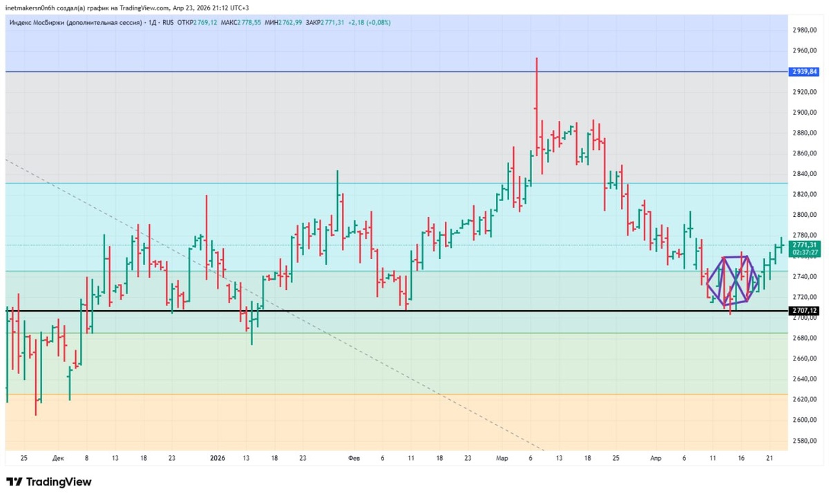 ❗️23 апреля российский фондовый рынок подрос, индекс МосБиржи укрепился на 0,36% до уровня 2771,46