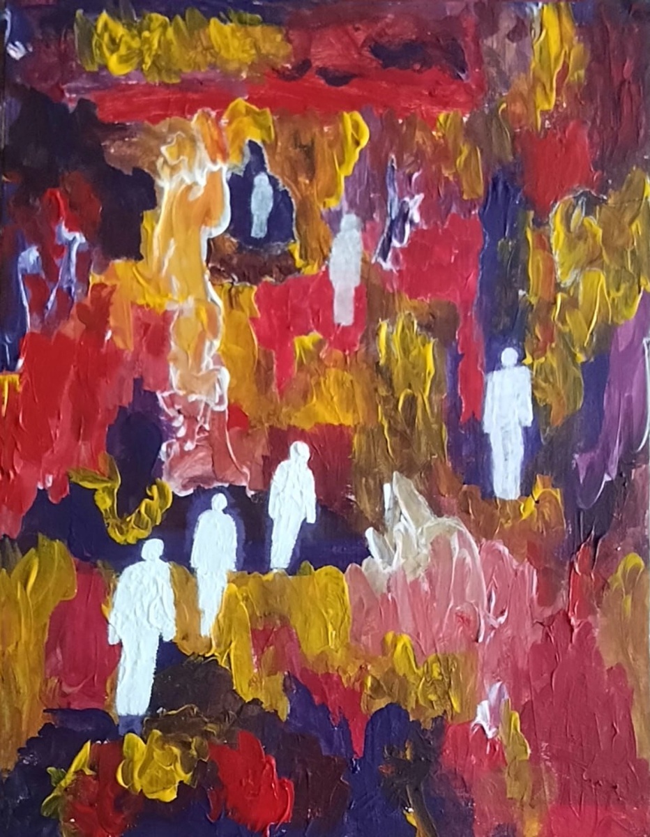 Восстанавливаюсь после перелома. Эту работу писала левой рукой — разрабатывала её. Сначала — непривычно и неровно. Потом отпустила контроль — и появилась свобода. Так родился «Переход через себя». Белые фигуры — про движение без опоры. Про момент, когда учишься заново доверять себе. Цвет здесь громче обычного. Как будто всё накопленное вышло сразу. Это не про травму. Это про внутренний сдвиг. И да… левая рука уже строит творческие планы 😄 Акрил, холст на картоне 40х30см