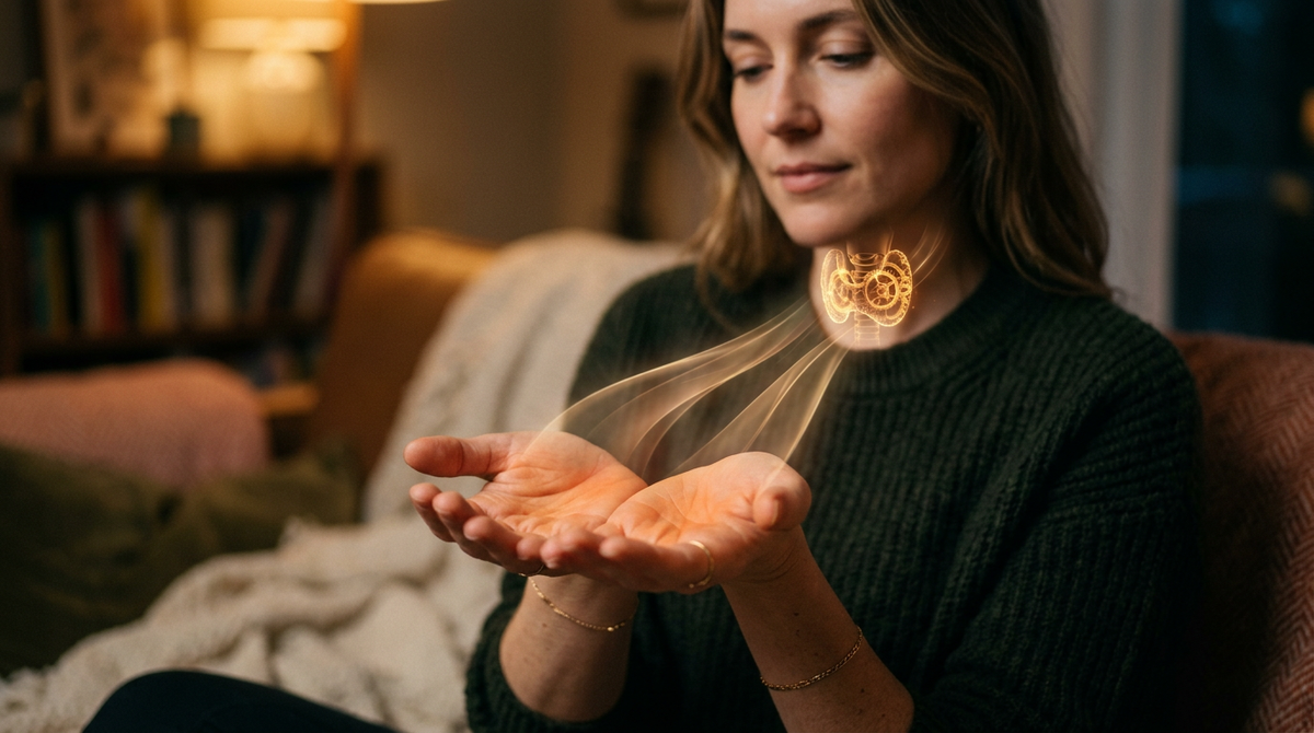 Наденьте теплые носки и выпейте стакан горячей воды. Холод на коже рефлекторно заставляет щитовидную железу экономить ресурсы, еще сильнее замедляя переработку пигментов. Тепло - это простейший способ дать системе сигнал, что энергию можно тратить.