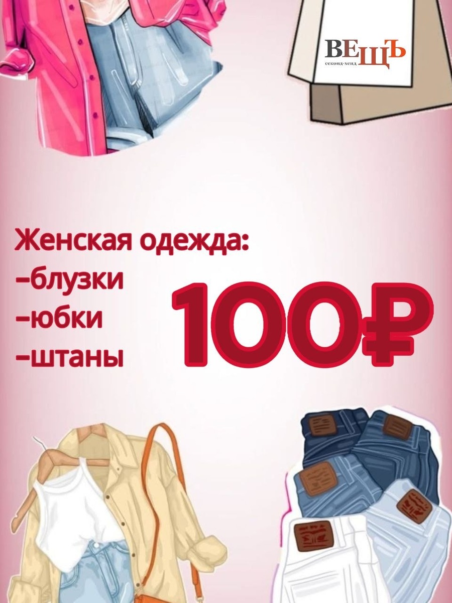 Первая распродажа этой весны! Женская одежда по 100₽ В распродаже участвует женская одежда: -юбки -брюки -блузки -рубашки -футболки ❗ Распродажа стартует 24.04.26 💥 Всех ждем за покупками! ❗ Верхняя одежда, нижнее белье и обувь не участвует в распродаже, будьте внимательны! #секондхендвещь ##вещьсекондхенб #распродажа #санктпетербург