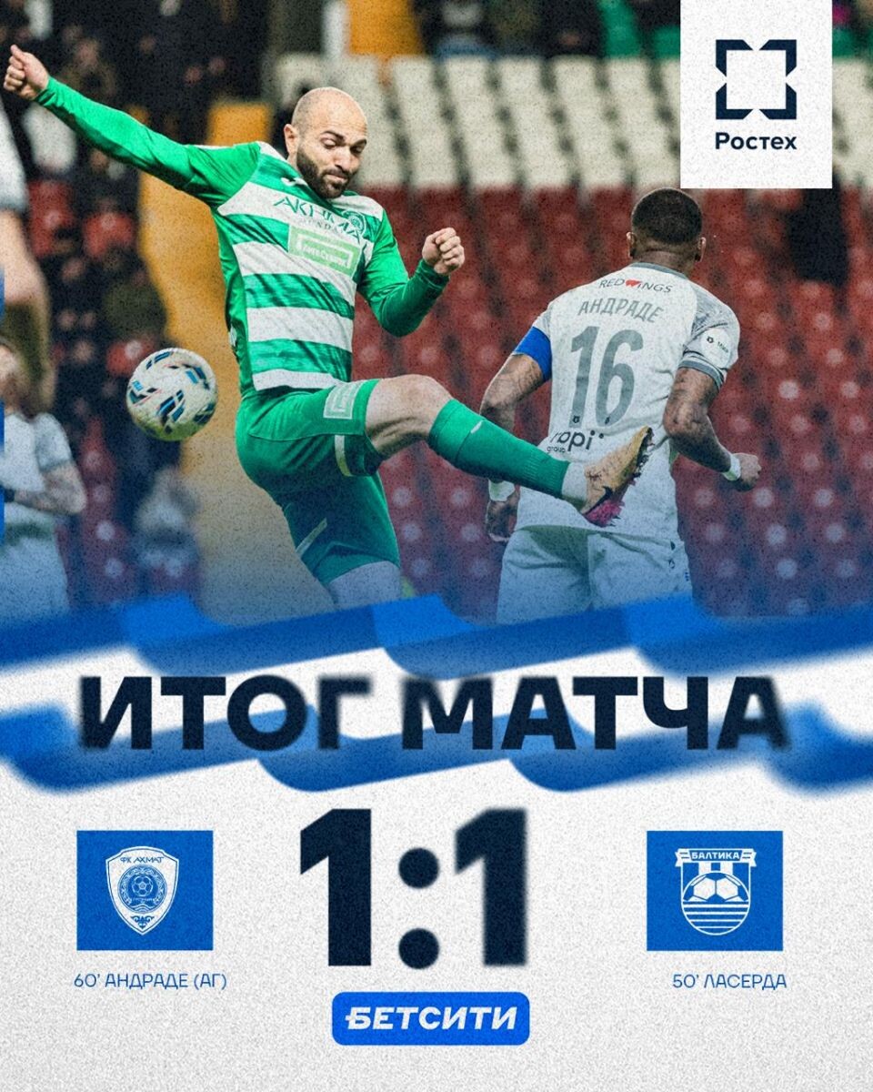 В рамках 26-го тура Российской Премьер-Лиги состоялся футбольный поединок между грозненским «Ахматом» и калининградской «Балтикой», который завершился ничейным результатом со счетом 1:1. Первая половина встречи прошла при доминировании калининградского коллектива, который, несмотря на созданные моменты, не смог реализовать голевые возможности. Ход тайма был также отмечен дисциплинарными санкциями: на 32-й минуте желтую карточку получил игрок «Балтики» И. Петров, а на 40-й минуте аналогичное предупреждение было вынесено Гассама. Развитие событий во втором тайме привело к обмену забитыми мячами. На 51-й минуте Дерик Лакерда вывел «Балтику» вперед, отправив мяч в ворота соперника. Однако уже на 60-й минуте грозненский «Ахмат» восстановил паритет в счете благодаря автоголу Андраде. Заключительная стадия второго тайма характеризовалась активными тактическими изменениями со стороны тренерских штабов, выразившимися в большом количестве произведенных замен. Тем не менее, несмотря на усилия обе