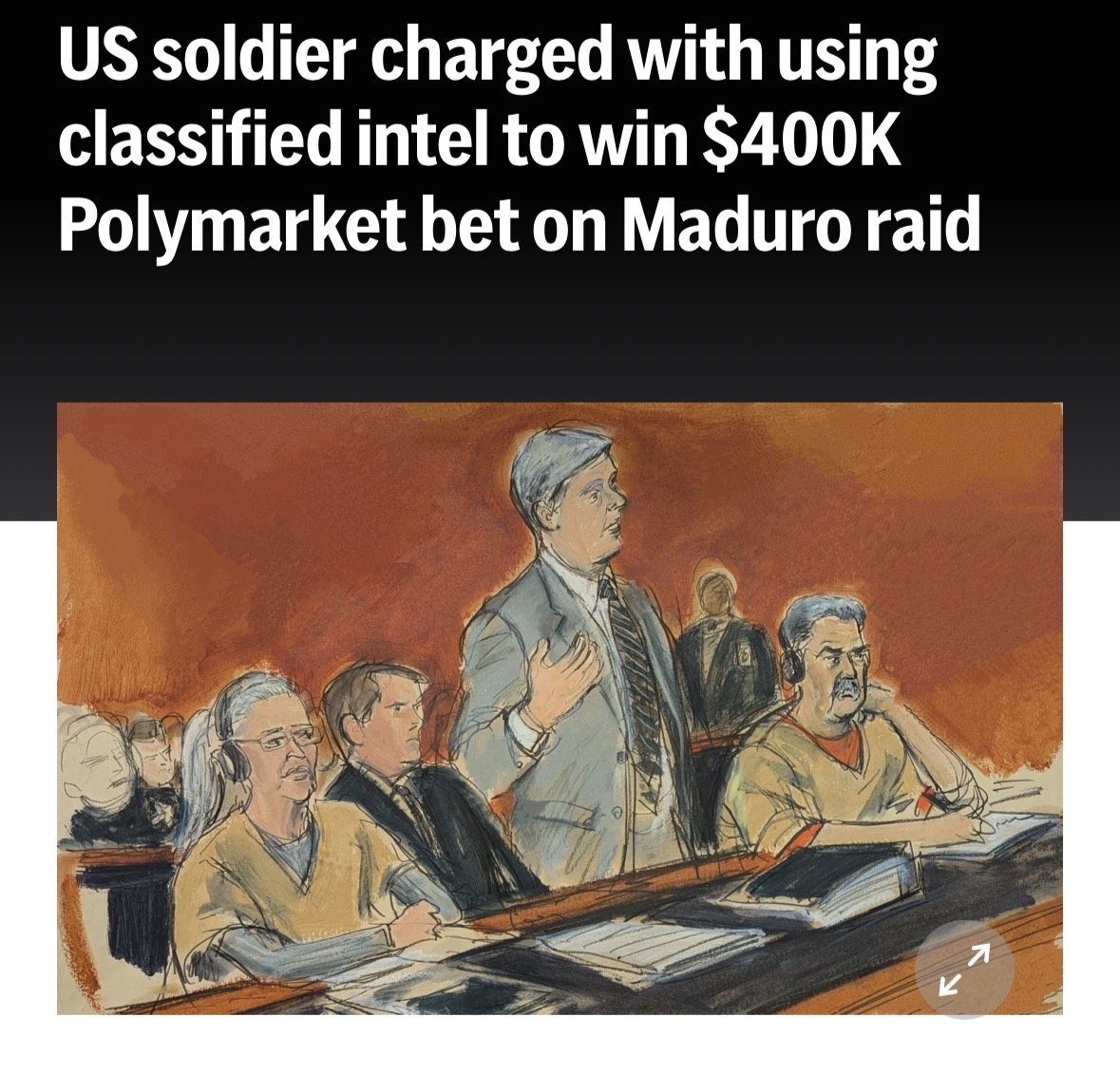 В США арестовали военнослужащего Ганнона Кена Ван Дайка. По версии прокуратуры, он использовал закрытую информацию о готовящейся операции против Николаса Мадуро, чтобы заработать на ставках через платформу Polymarket.