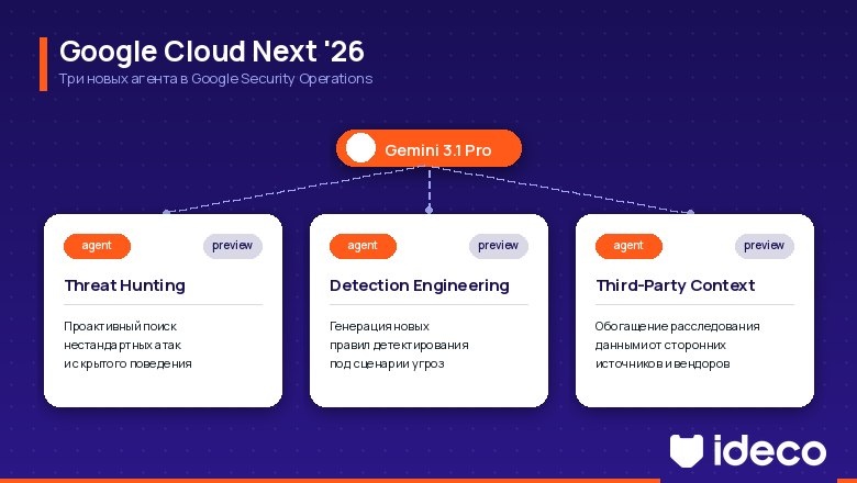 Google представил стратегию кибербезопасности на конференции Cloud Next '26: вместо отдельной модели для защиты встраивает Gemini 3.1 Pro в набор агентов. Подход отличается от узкоспециализированных cyber-моделей Anthropic и OpenAI. В основе — приобретённая Wiz (32 млрд. долларов) и агентная оборона поверх универсальной платформы. Читать → @vgadzhety · Habr #gadgets