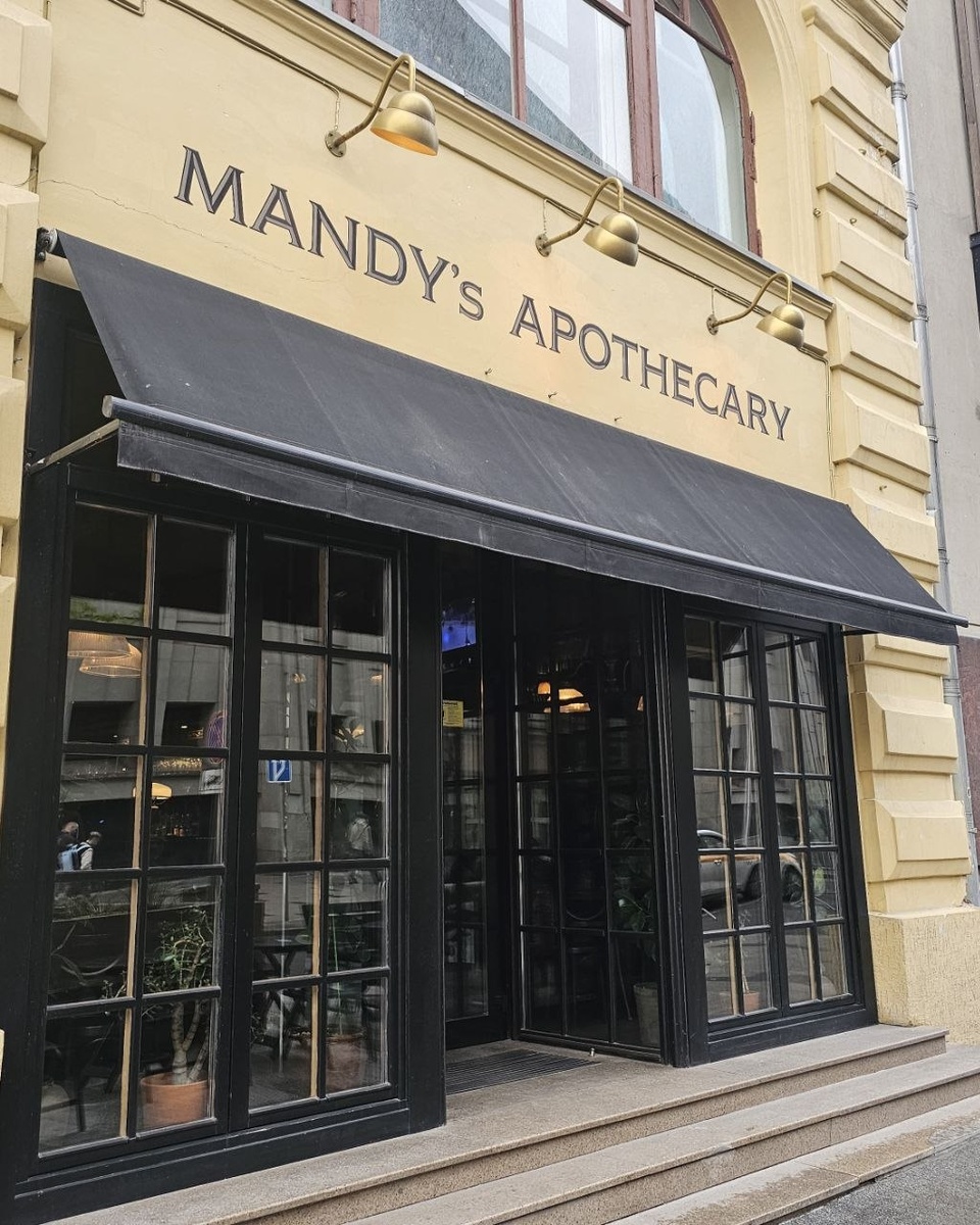 Меня в этот раз занесло в Mandy’s Apothecary: место, которое будто сошло со страниц старой книги. Это не просто бар, а настоящая аптека с атмосферой старого Дублина. Массивные двери, полутемный свет, стеклянные скляночки. Дубовая барная стойка длиной и стены, которые хочется разглядывать отдельно полчаса. Здесь правда ощущение, будто попали в аптеку прошлого века, где вместо рецептов выписывают хороший Guinness и душевные разговоры Основные посетители, должны были тоже сойти со страниц книги. Мне всё чудилось, что это завсегдатые местные, которые занимают один и тот же стул и ценят хорошую беседу Конечно, я сразу накинулась на Guinness, люблю этот густой, горьковатый вкус. К нему мне тут же посоветовали фирменные мини-чебуреки, и это было преступно вкусно. Потом пошёл сладковатый батат, кальмар на гриле, и уже было поздно останавливаться Муж выбрал тёплый салат с рибаем, но, как настоящий мужчина, решил, что мяса много не бывает. Поэтому следом появилась тальята с картофелем и соусо