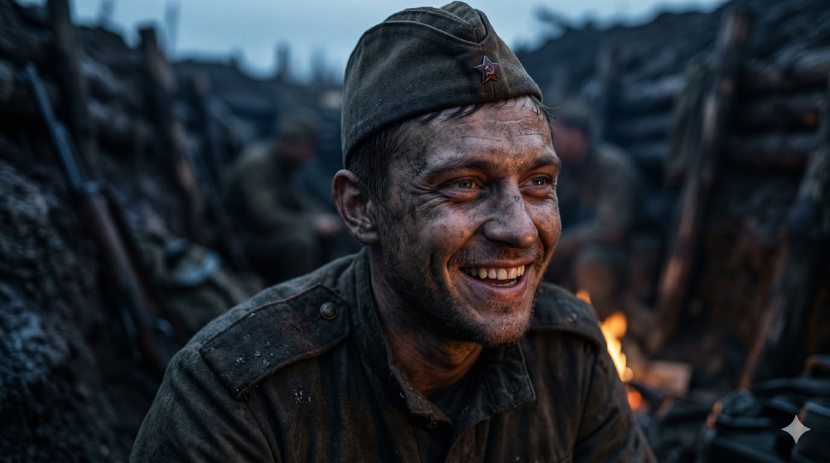 Обычные агитационные лозунги в такой атмосфере не работали. Солдатам нужен был не супермен, а человек с понятным механизмом адаптации. Юмор Тёркина это не свойство характера. Это осознанный выбор. Измотанный человек отказывается признавать абсолютную власть смерти над своим сознанием, используя иронию как единственное доступное оружие.